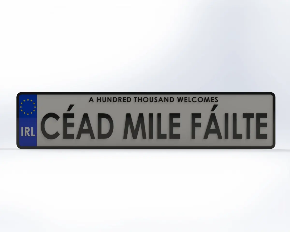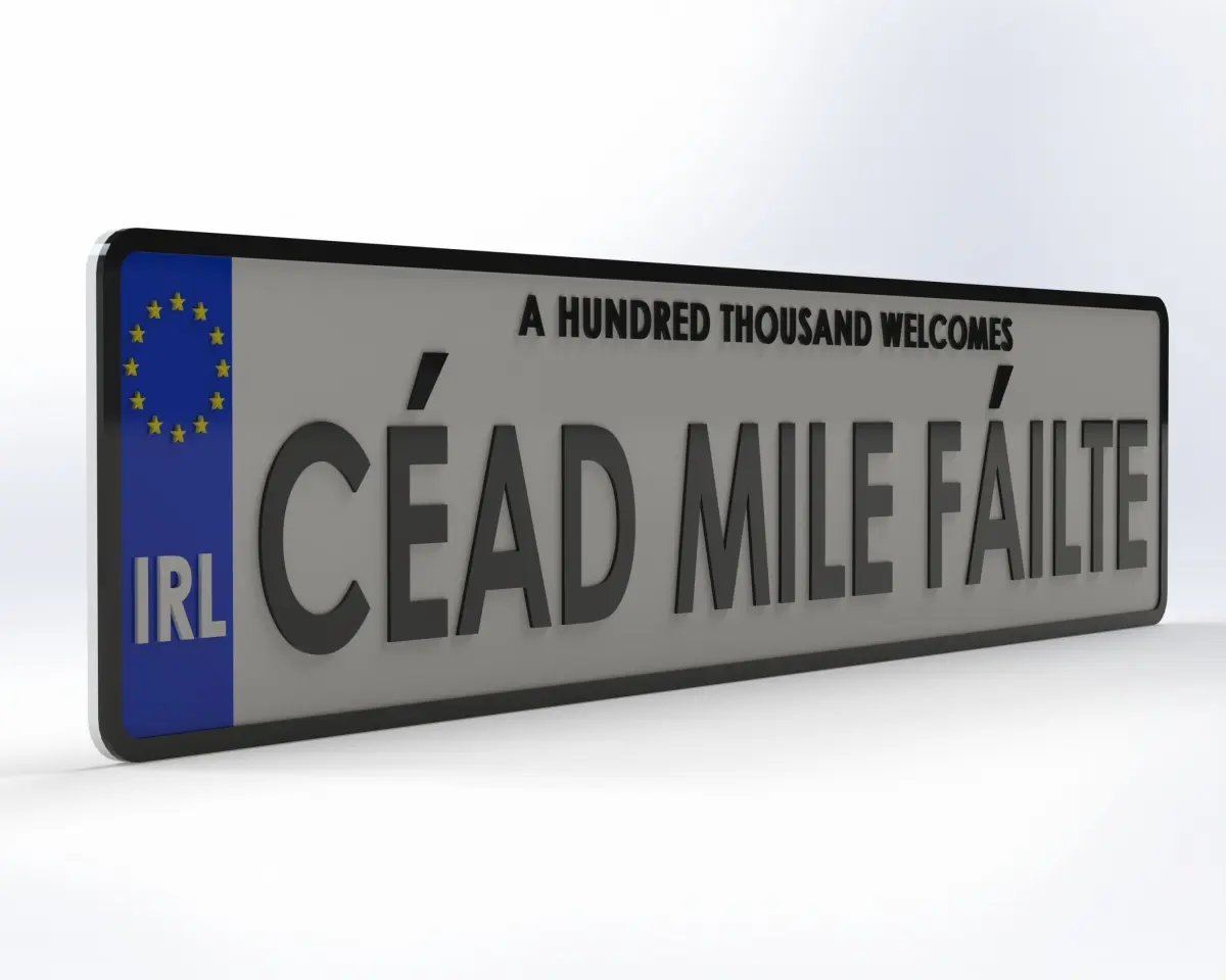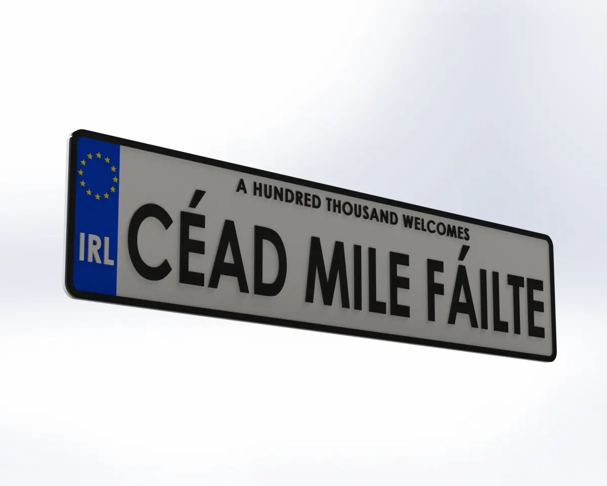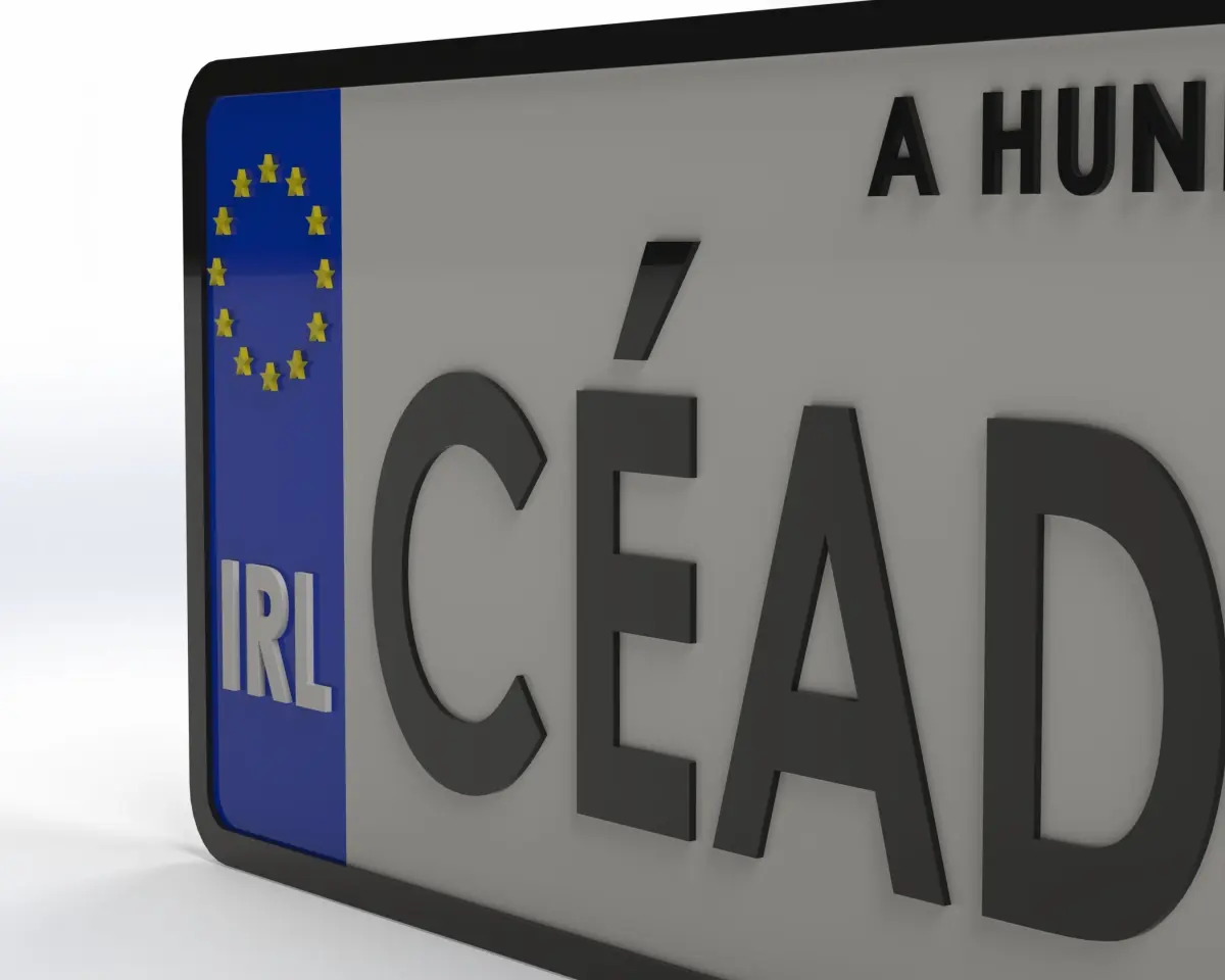 This license plate is a 1:1 scale measuring 112mm x 520mm. The EU stars, country abbreviation and lettering are raised 1mm from the surface. The total thickness of the license plate is 5mm.
