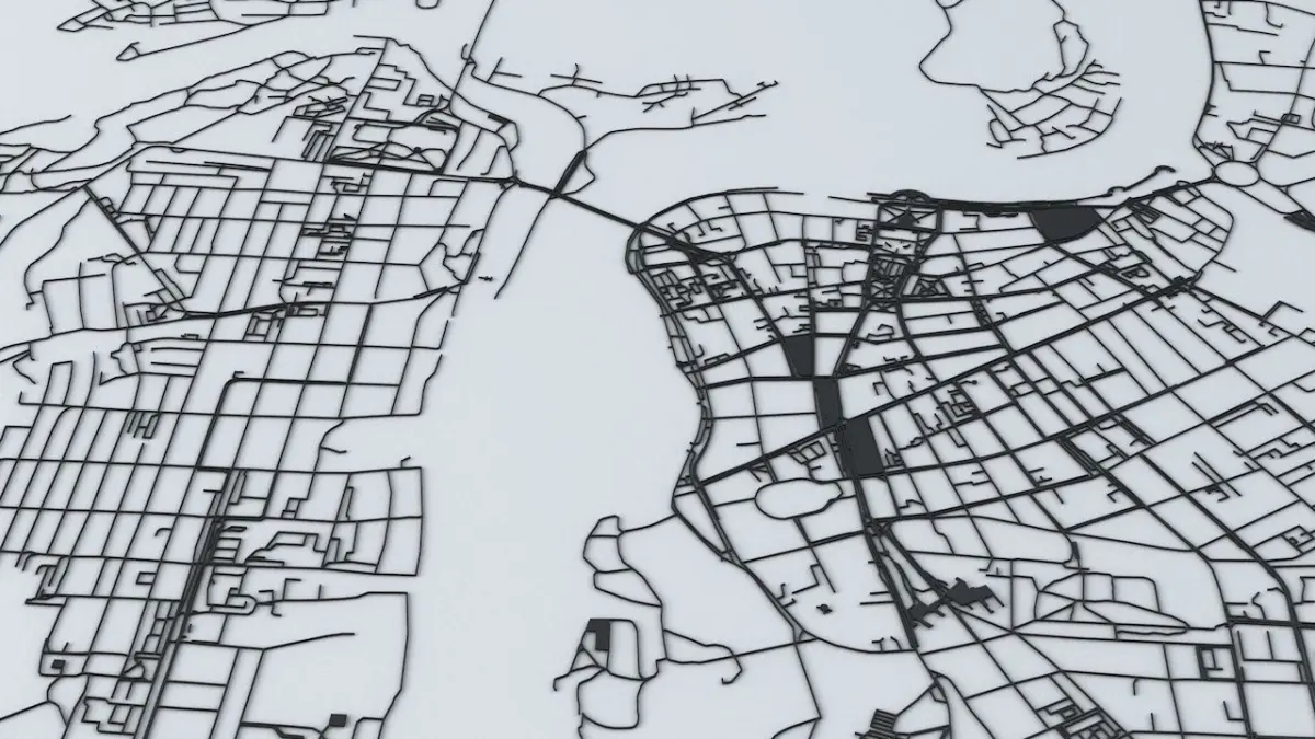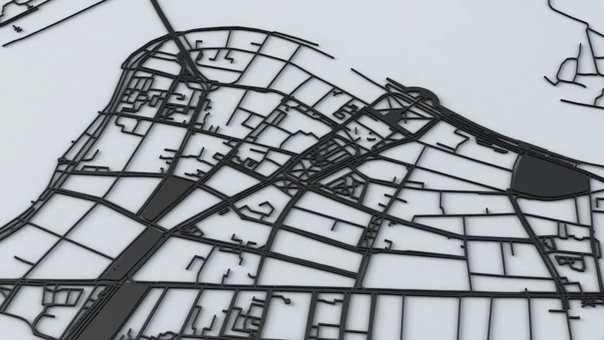 - the model is positioned on a flat surface (road network is on the “floor” - no elevation data included)