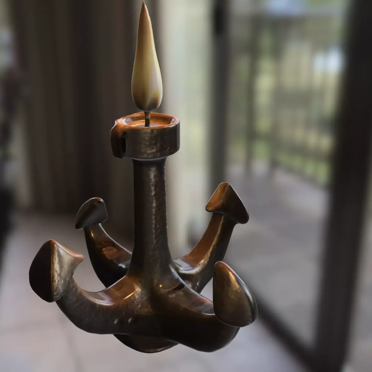 This 3D model presents a high-detail anchor-shaped candle stand with a glowing flame, crafted with a weathered iron texture ideal for nautical, fantasy, or steampunk settings. Perfect as an environment prop in games like Sea of Thieves, Genshin Impact, The Witcher, or Skyrim. The model is also fully optimized for 3D printing, making it suitable as a physical tabletop or decorative piece.