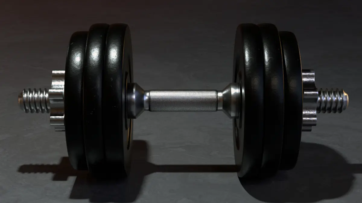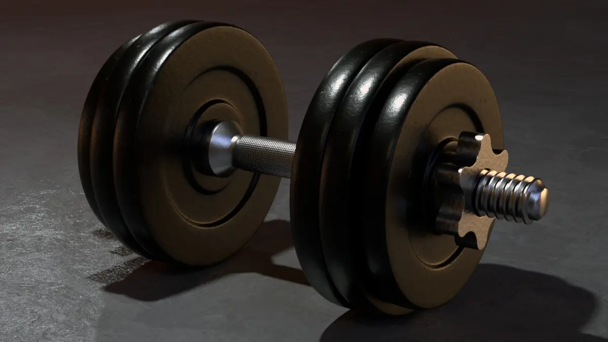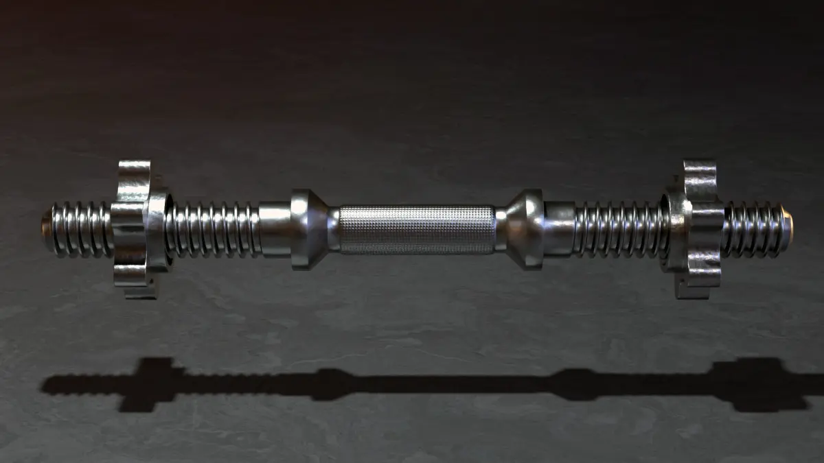 Rod, Barbell Lock, Medium Weight Plate and two Big Weight Plate.