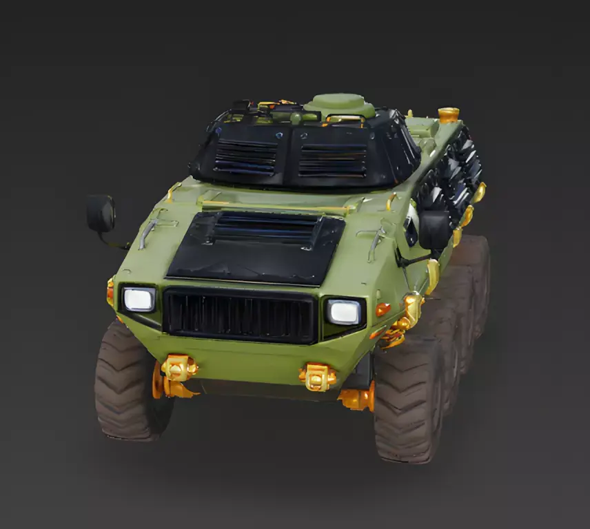 The Overall ConceptThis asset is the ultimate frontline transport for elite squads. It is a tactical armored personnel carrier (APC) featuring a rugged olive-drab finish and luxury gold accents, making it a perfect hero vehicle for strategy games, military shooters, or high-stakes mission-based adventures.
