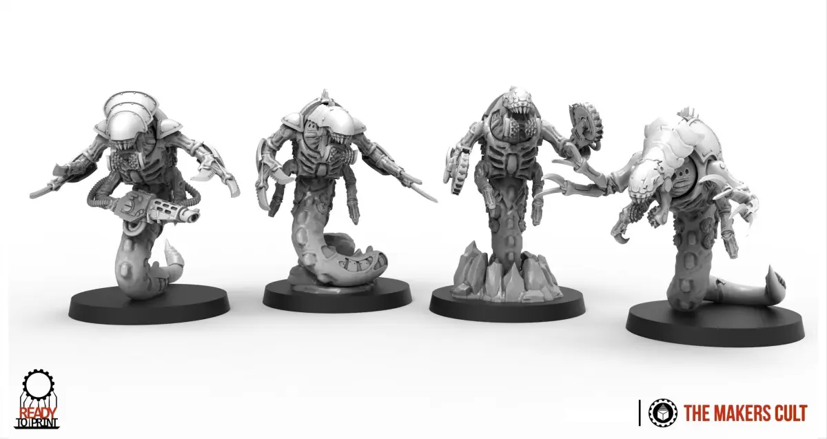 This builder set allows to create squads of underground digger monsters.Fits on a 40mm or 50mm base