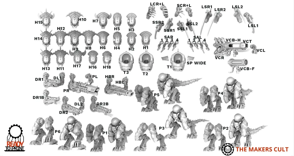 The most versatile creatures from the Iron Hive, Warriors are able to swarm the battlefield with either firepower or brute force.This set is the MK2 version of the Iron Hive warriors, with better proportions, more dynamic poses, and more detail.