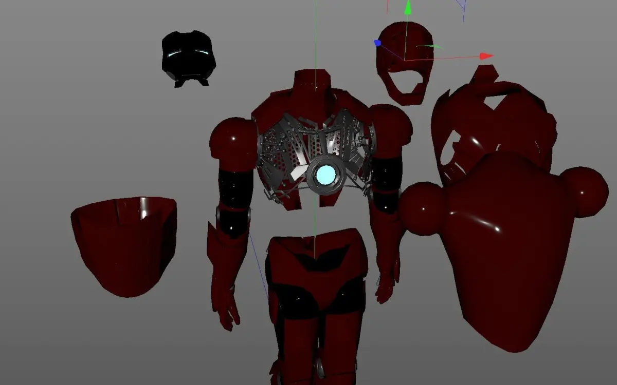 this model render i standard render in c4d R19you have c4d so download c4d file for benefit becuse fbx file matrial in withe not redso you can rion man model of fbx file downloaded so you cant get this resultThe all part are saprated you can anime this characther with bone system