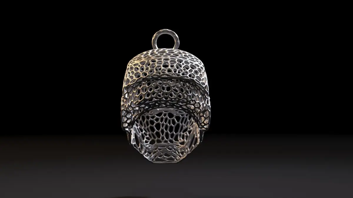 Iron Man Christmas tree decoration voronoi. A very beautiful New Year's decoration in the form of a superhero's head. A very unusual decoration for your home or office for the holiday.