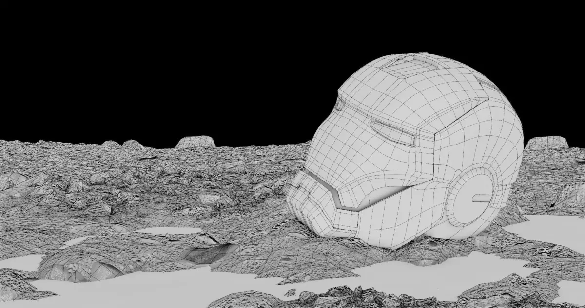 Iron man Helmet and ground model with shading and lighting included in Blend File.Rendered in Cycles.