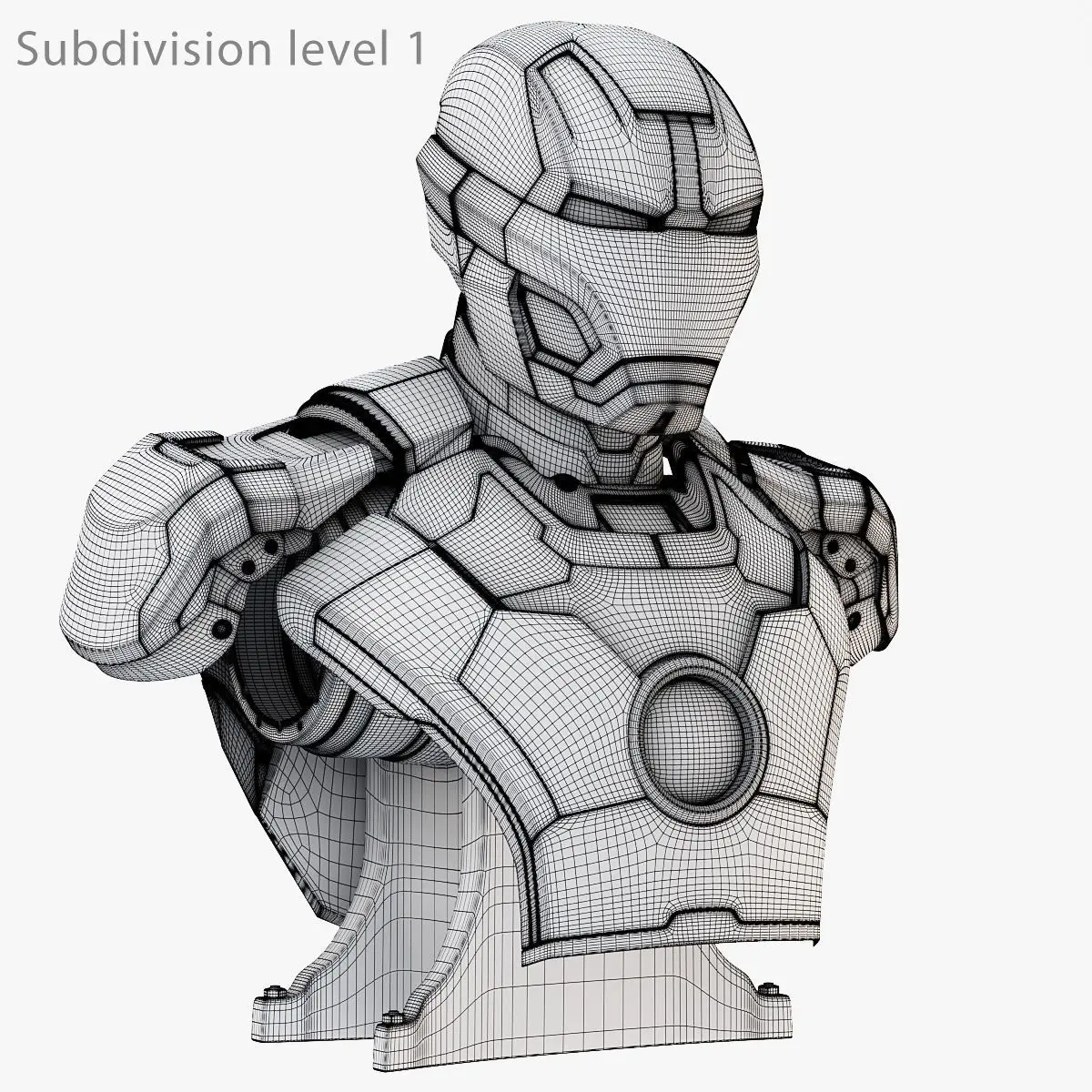 The bust of iron man mark 42 is a high-quality photoreal model. The model has a fully textured and fully close up ready. Originally modeled in 3ds Max 2016 and textured in a substance painter, presented with V-Ray. Fidelity is optimal up to a 4k render.