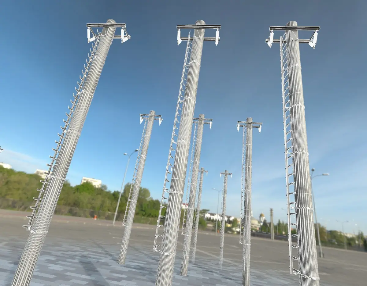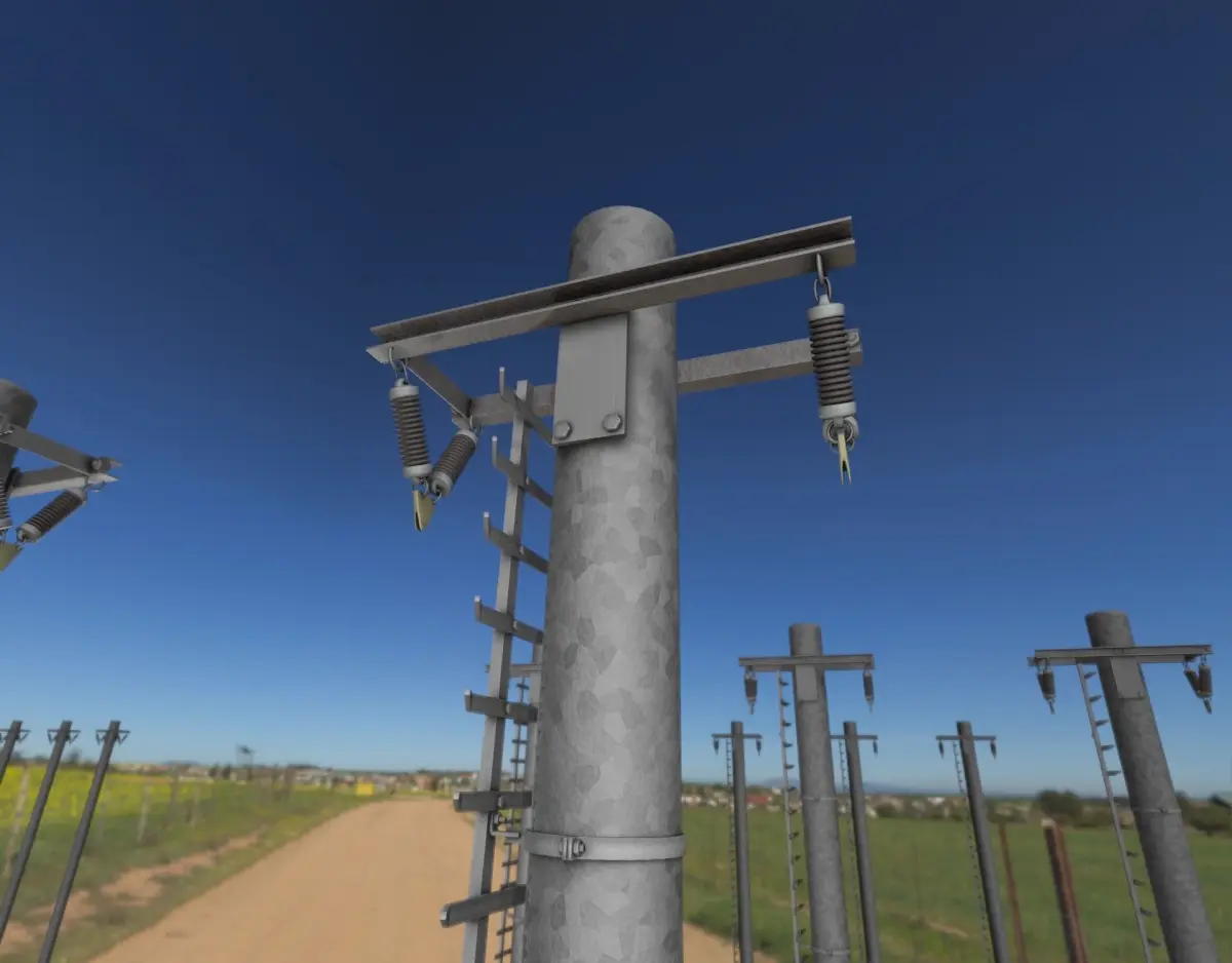 Here is the iron power pole with ladder (Object 064) out of our modular electricity poles package https://youtu.be/csQUDU6WjkE.