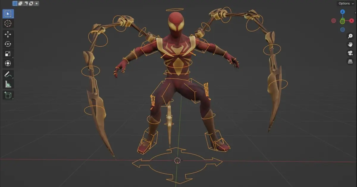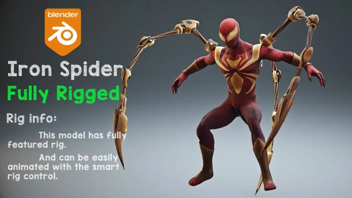 Iron SpiderMan rigged 3d model - The spider verse suit made in Blender 2.9 with all parts are textured including normals. He also has a fully featured rig to make a range of fantasy and animations.