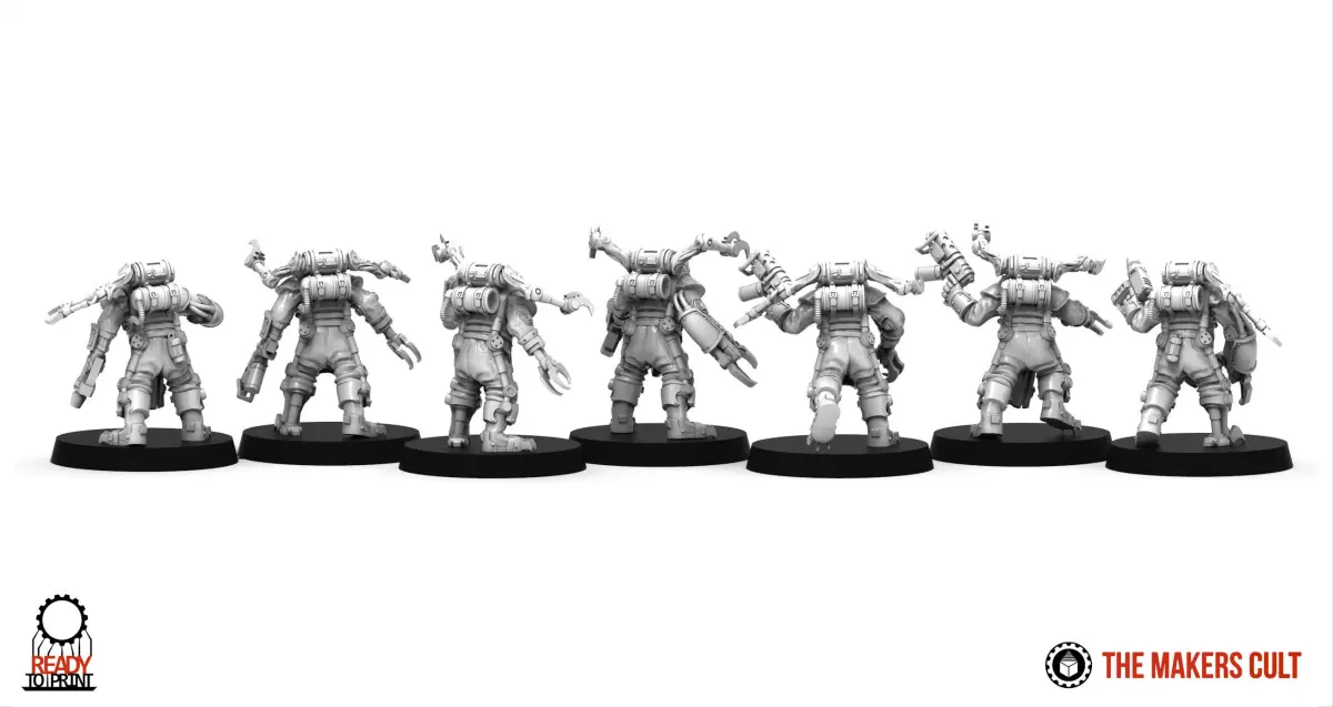 This is a squad builder set with modular parts. It can allow to assemble multiple different Xeno-altered men :recommended base size : 32mm