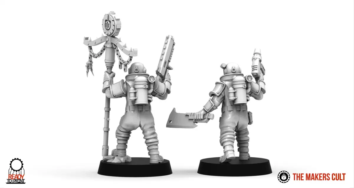 Foremen are the leaders of the various Plodders groups of the Ironblood AssemblyThey wear a special version of the armoured suits and use their own equipment.The parts are fully compatible with any of the Plodders sets.Fits on 25mm bases