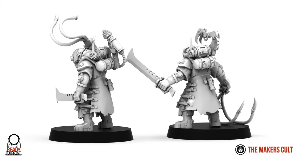 Forgeleads are specialized and higher ranks Forgehands.This set includes parts fully compatible with the Forgehands set and allows to build 3 unique characters to leads the squads.