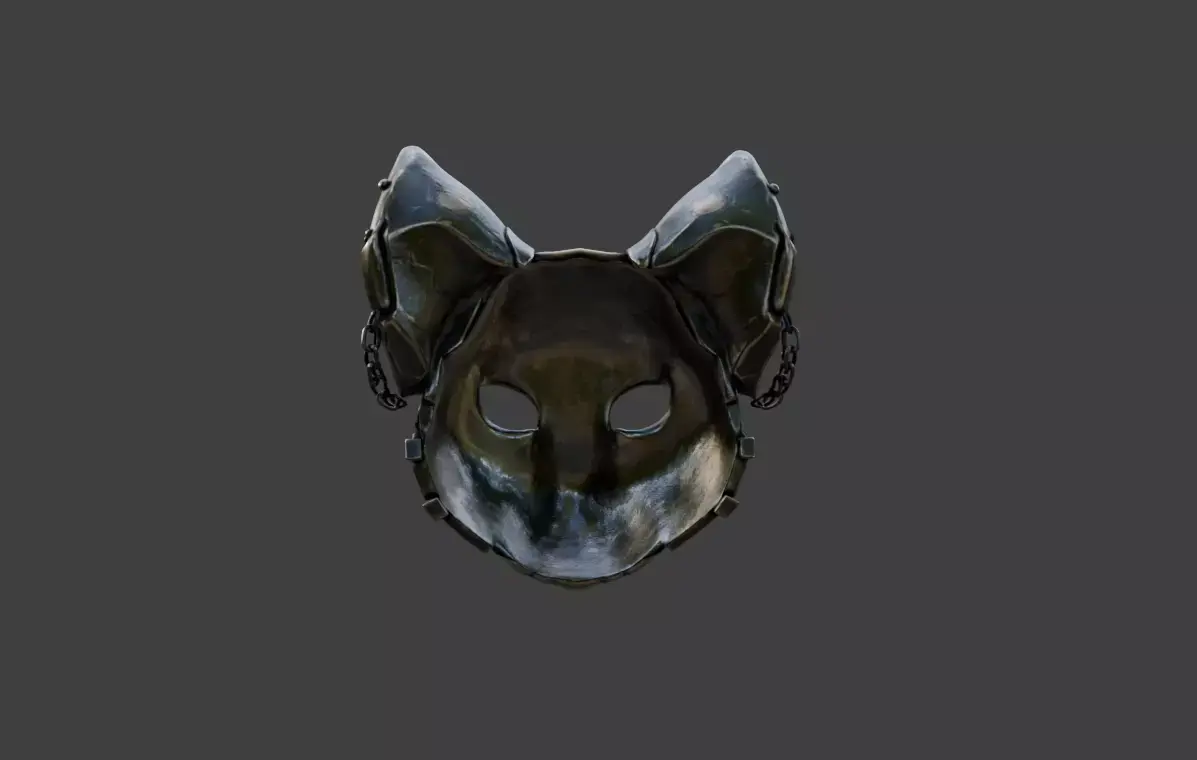 Narratively, this mask can represent many archetypes: an elite assassin guild emblem, a secret society symbol, a mechanized guardian spirit, or a cybernetic enhancement device designed to augment sensory perception. The feline symbolism conveys agility, intelligence, stealth, and dominance—qualities that resonate strongly in character-driven storytelling.
