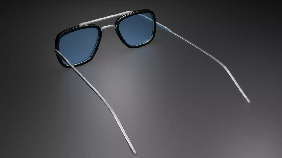 This pair of sunglasses features a sleek, futuristic design with sharp blue rectangular lenses that give off a tech-inspired vibe. The minimalist black frame adds a clean, modern touch, while the thin metallic arms suggest both durability and lightweight comfort. It’s a stylish accessory that would fit perfectly in a cyberpunk streetwear collection or a high-fashion techwear lineup.