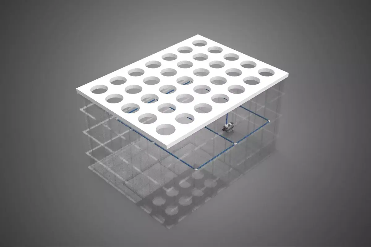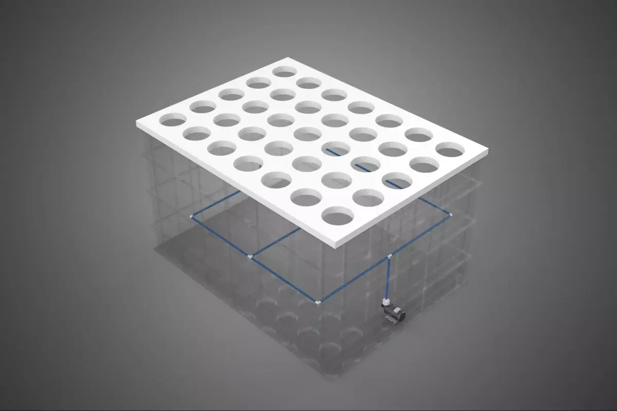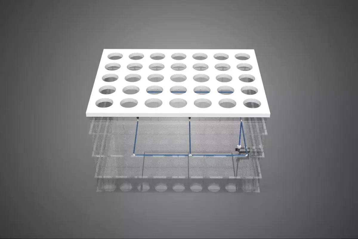 PHC refers to the physical support structure. Plants are typically held upright using non-reactive collars (e.g., neoprene inserts or specialized grow plugs) inserted into holes in the structural panels or containers. These individual holes secure the stem or crown of the plant, allowing the bulk of the root system to hang freely within the dedicated aeroponic chamber. This modular design facilitates easy inspection, maintenance, and harvesting, and reduces the risk of widespread pathogen transmission compared to media-based systems.