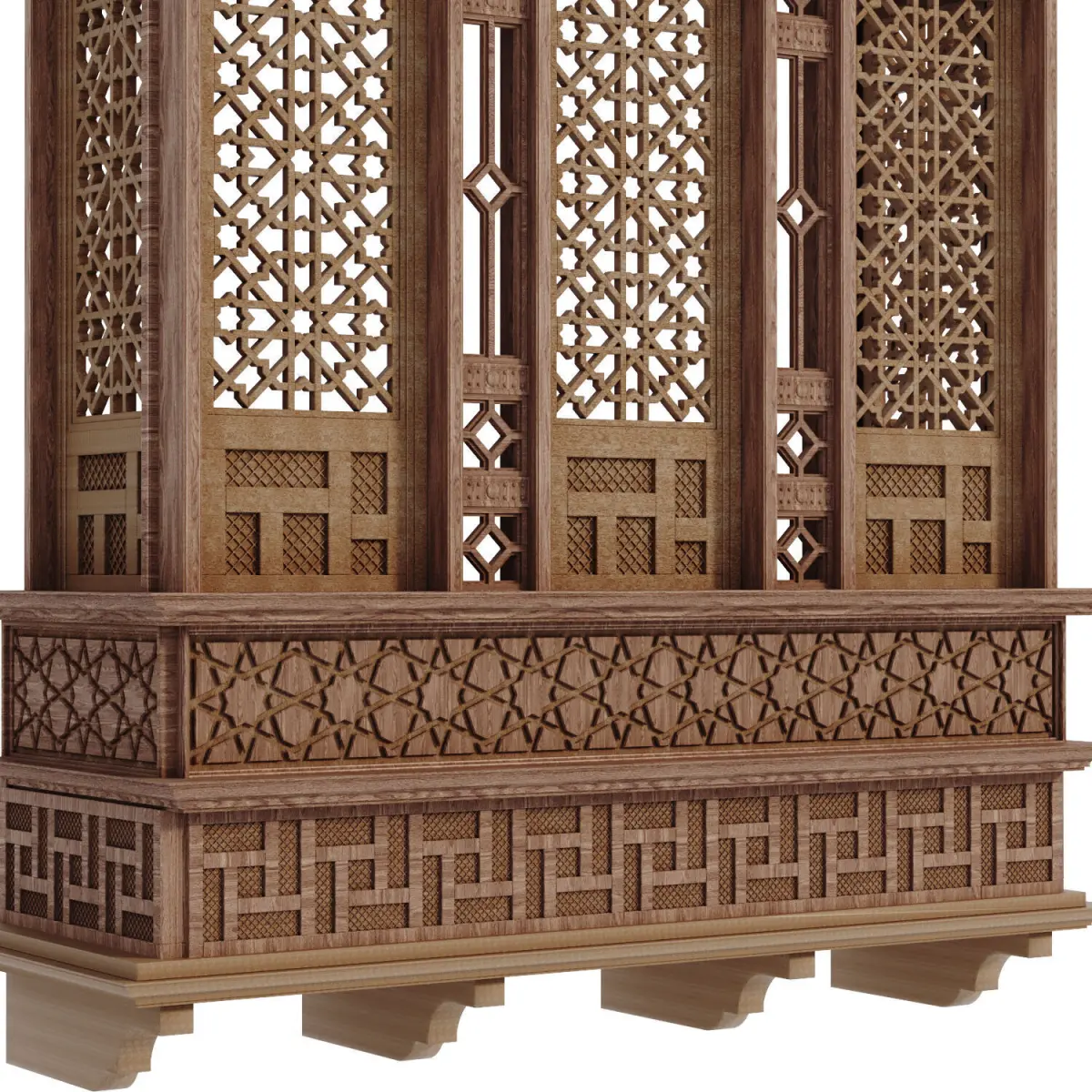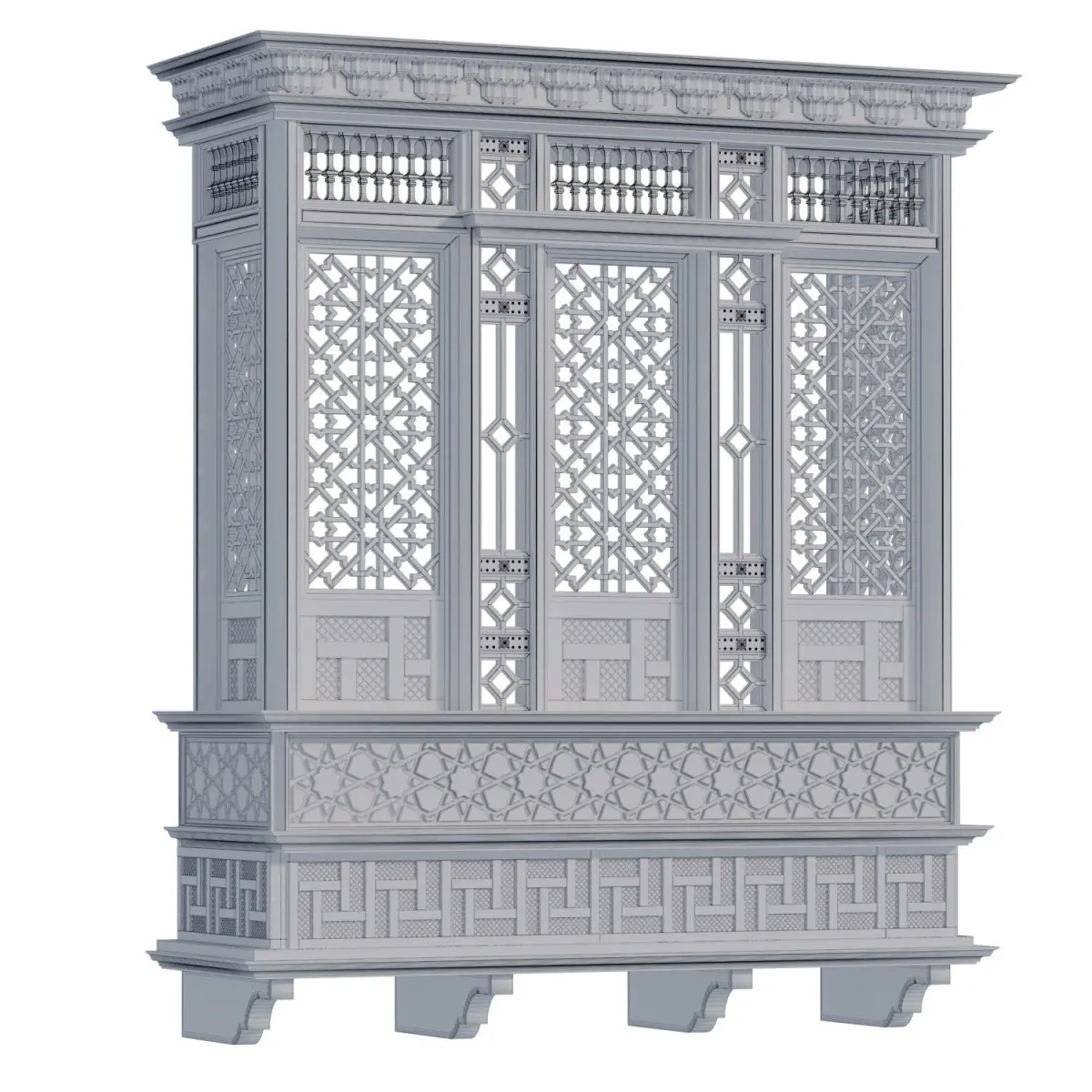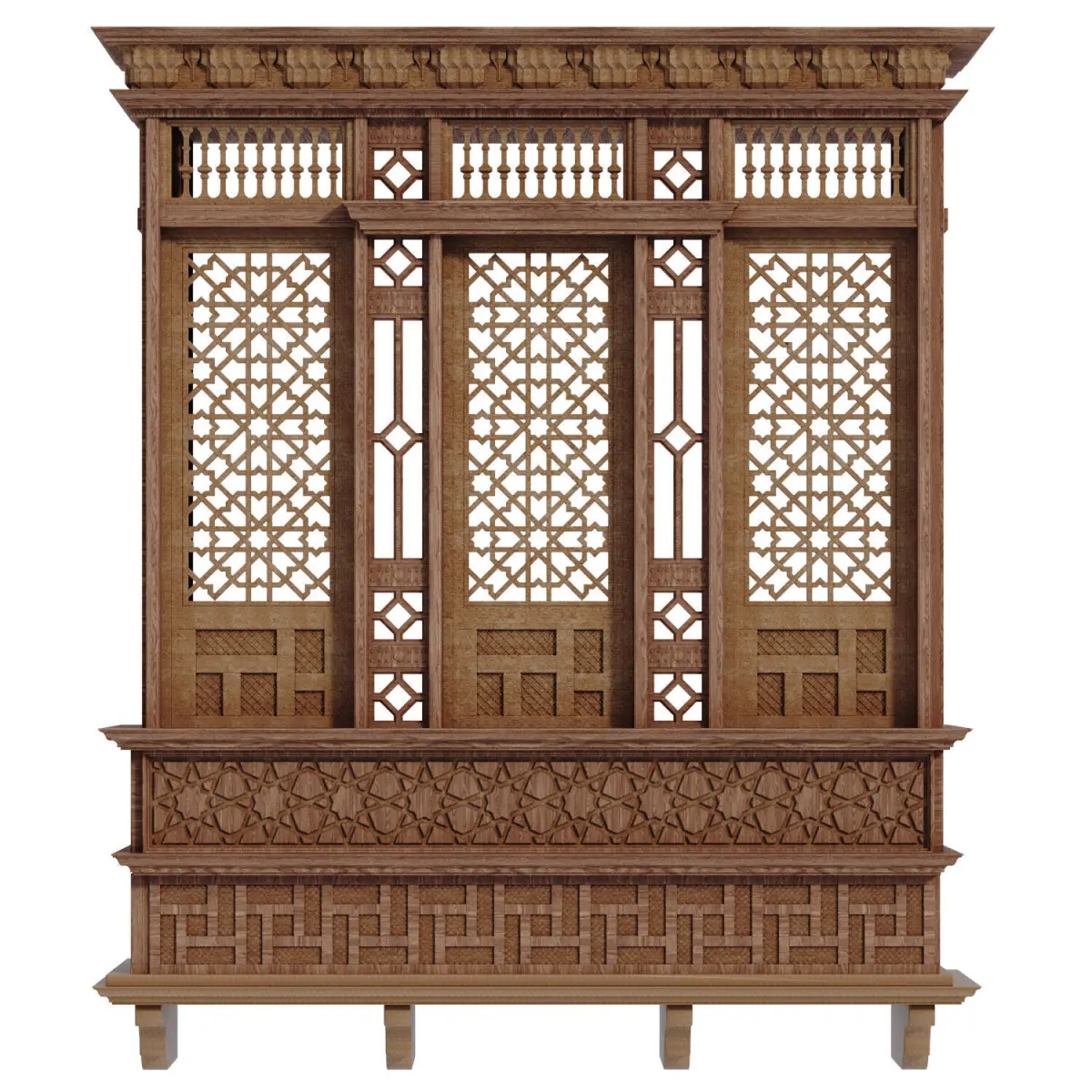 Name: islamic arabic mashraba windows set 580Type: modelMid: Format: 3Ds Max 2019Export: FBX, 3DSRender: VRay (6.x), Corona (11)Polys: 233458Verts: 272236Matclasses: Multimaterial,VRayMtl,_CoronaPhysicalMtlUnits: CentimetersDimension: 177.06 x 64.57 x 206.55