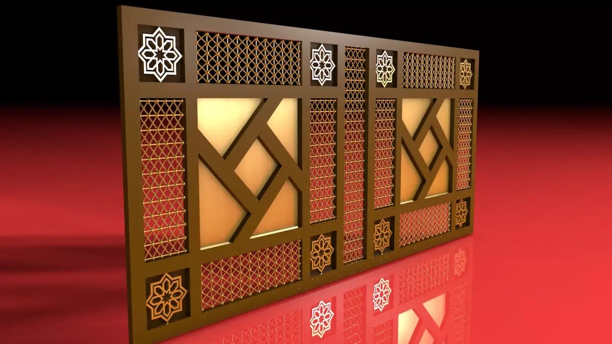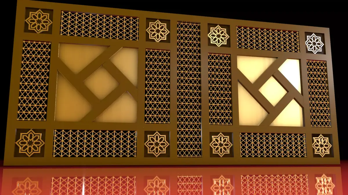 High-quality 3D model of an Arabic geometric wooden screen (Mashrabiya style).The model is perfect for interior decoration, traditional architecture, or oriental design visualization.Clean topology, realistic textures, and detailed ornamental patterns.