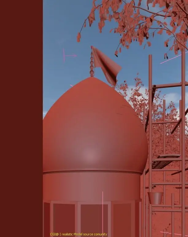 This is a highly detailed Islamic Mosque Dome 3D Model, meticulously crafted in Autodesk 3ds Max and rendered using V-Ray to deliver photorealistic results. The model showcases traditional Middle Eastern architecture and is perfect for use in architectural visualizations, cultural animations, historical environments, and game development.