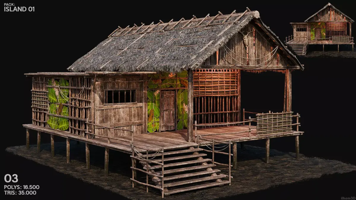 ISLAND 01 with INTERIORS - 4K PBR TEXTURES HIGH QUALITY