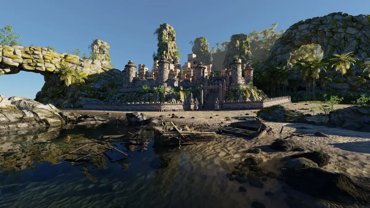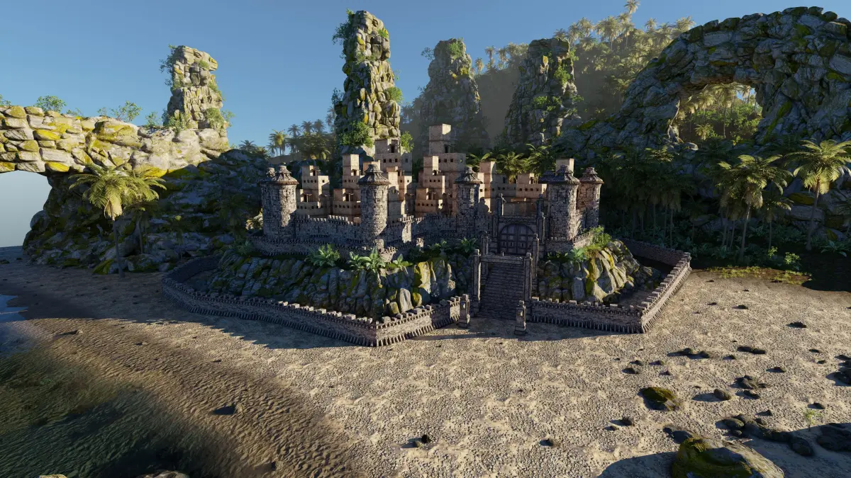 Island Castle Beach Scene Made In Blender3D v4.1