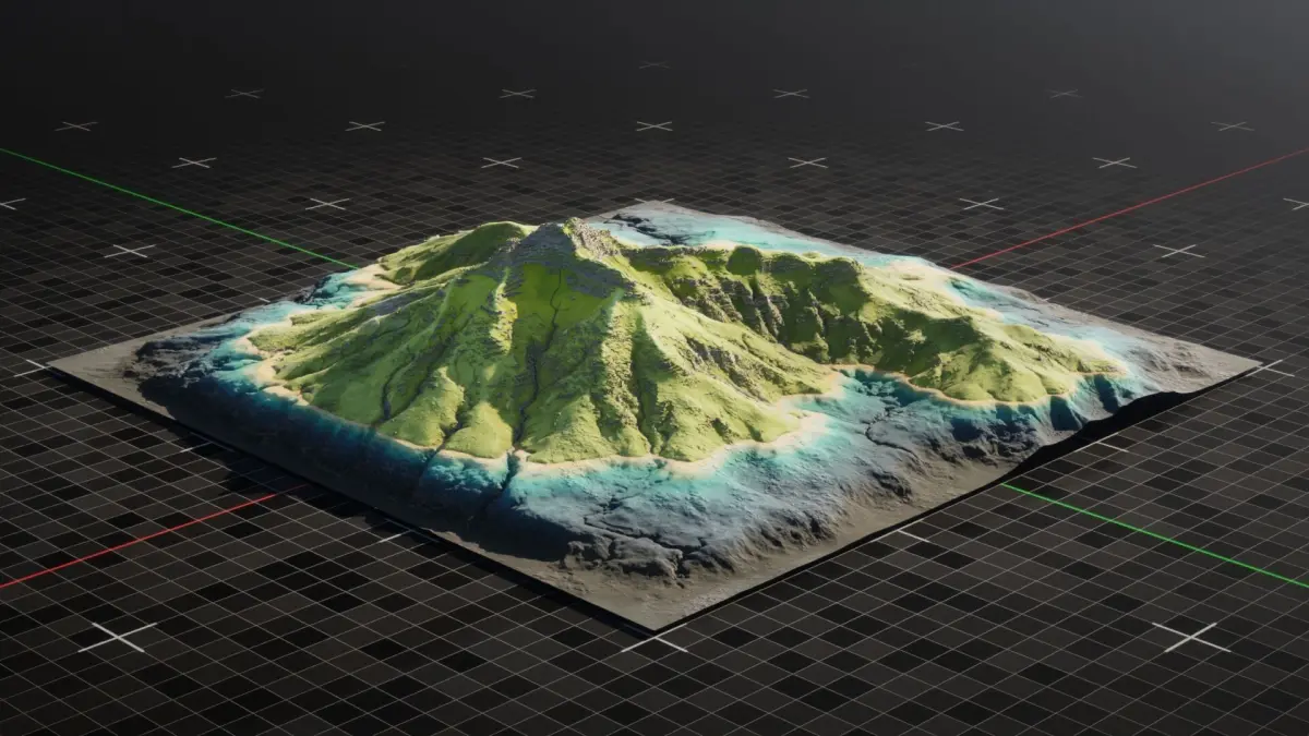 Island TERRAIN 1Optimized 3D Model of an Oceanic Island Mountain landscape ready for Cinematics, Animations, and Games. This asset is native to Blender. This asset is based on a 5000x5000 km area but can be scaled to fit your needs and is meant for medium to far shots to make interesting and photoreal oceanic environments. The model is native to blender with a custom material setup making the mesh extremely detailed and for best results should be recreated in your software for best results. The blend also contains an ocean mesh and shader as seen in the preview images.There is a Boulder Scatter mesh also included to add extra detail to the cliff regionsTextures are not packed into the .blend or .fbx files and will have to be relinked upon download. (This is to save space)An 8K Displacement map is also provided incase you don't want to use the provided optimized mesh and have quad topology.This mesh is Optimized to only have more triangles where needed, while flatter areas contain less triangles.This Asset Includes:8K Textures (BaseColor, Normal, Displacement, Slope Mask, Shoreline Mask, River Mask, Ocean Mask) 2, 4K CC0 Tileable texture sets for additional Detail (Cliff and Grass) (Color, Normal, Displacement, Roughness).Blend with custom materials to make the most use of the textures and maximize detailsThis asset is made to be user friendly but also super customizable in terms of texturing.Cover Images are rendered in Blender Cycles.NOTE: This is 1 of 3 terrains. If youre looking to make even better and more realistic Oceanic Island landscapes it is best to combine this with other terrains from the complete pack for more variation and freedom.