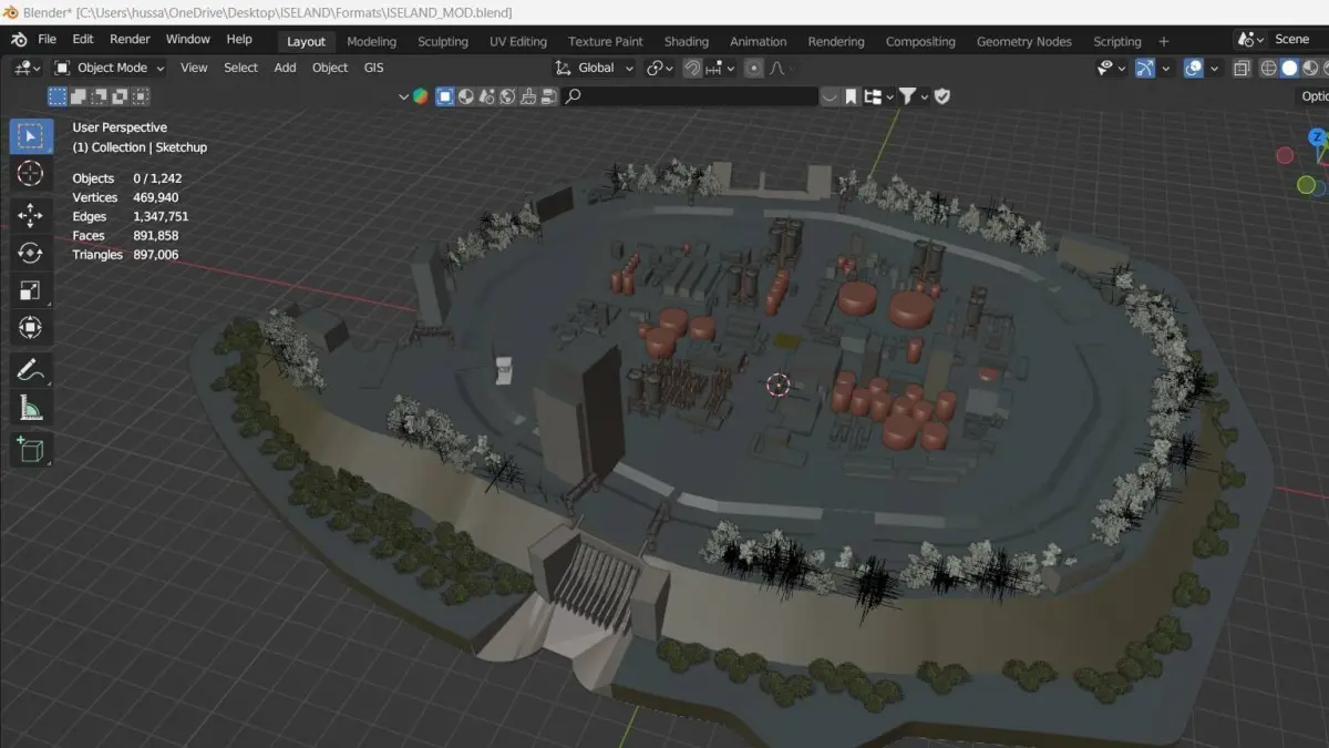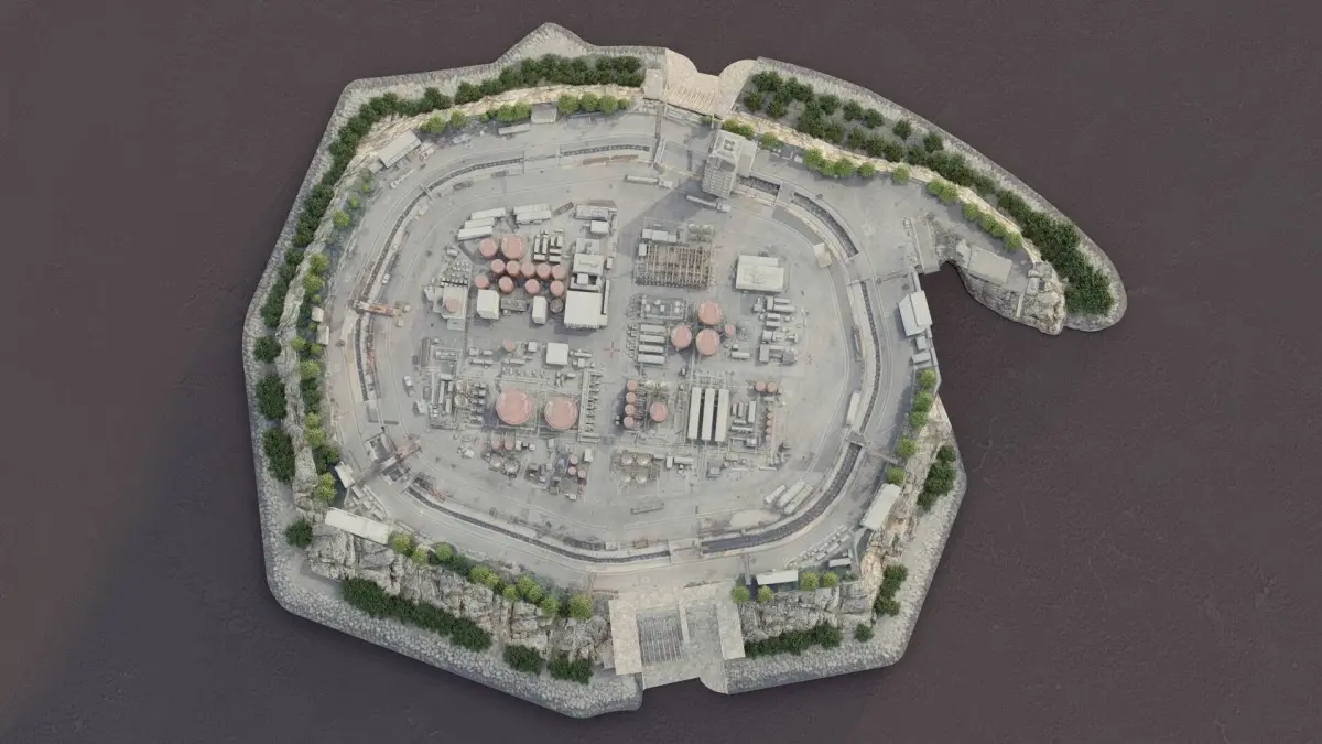 Bring your projects to life with this highly detailed Island Outpost 3D model, designed in SketchUp and perfect for animations, games, or architectural visualizations. This complete scene features a unique combination of residential buildings, industrial gas facilities, structured roads, and varied terrain set on the deep sea.