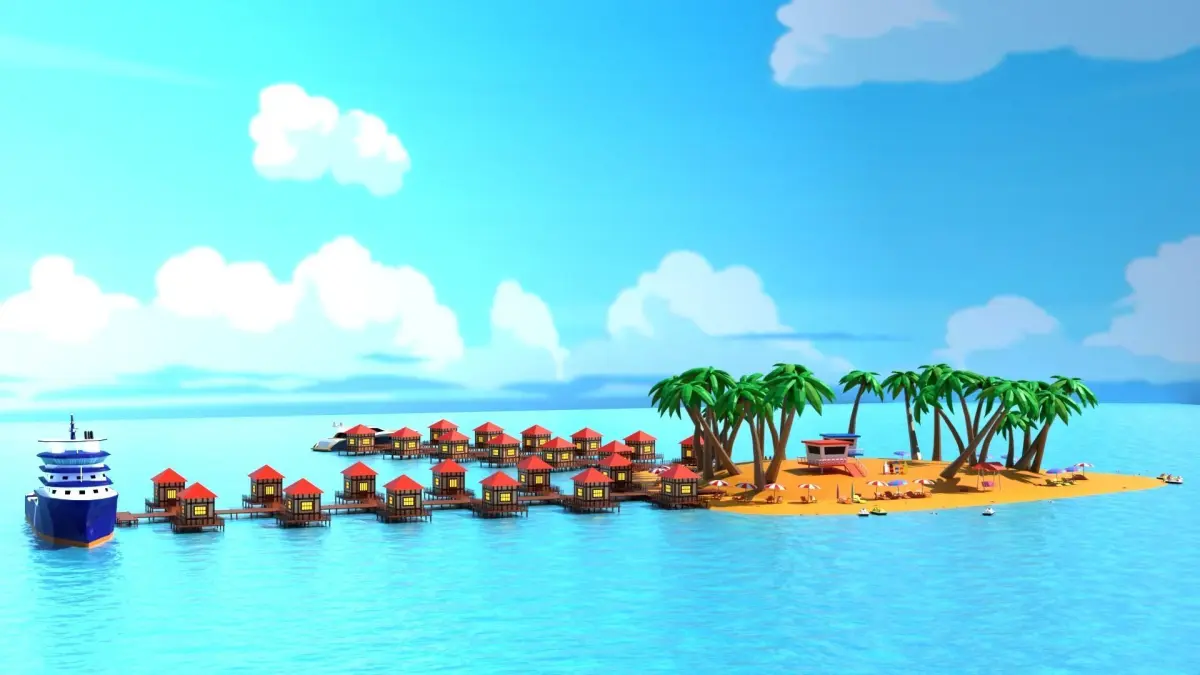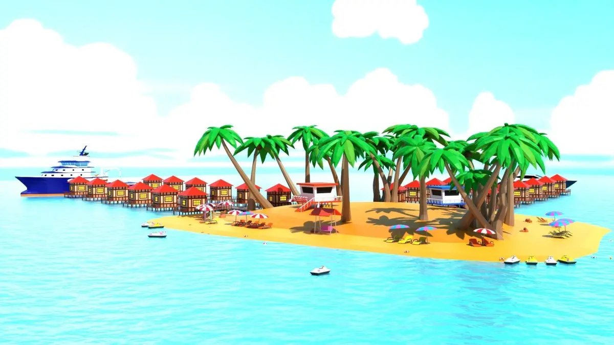 The Cartoon island resort and beach model was created with Blender version 3.6 to do.