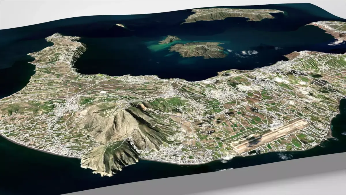 Santorini is a small group of volcanic islands off the ridge in the Aegean Sea.