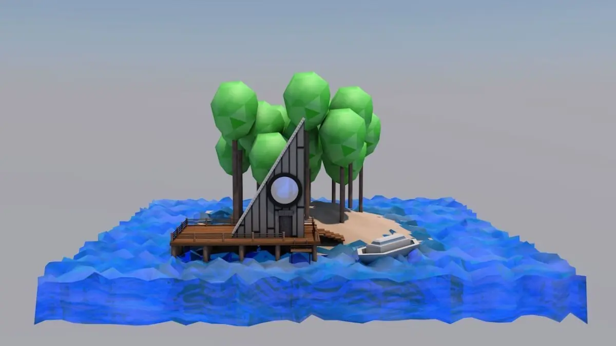 a design that uses the island concept, I added the design of this boat so that it adds the aesthetic value of the 3D design.