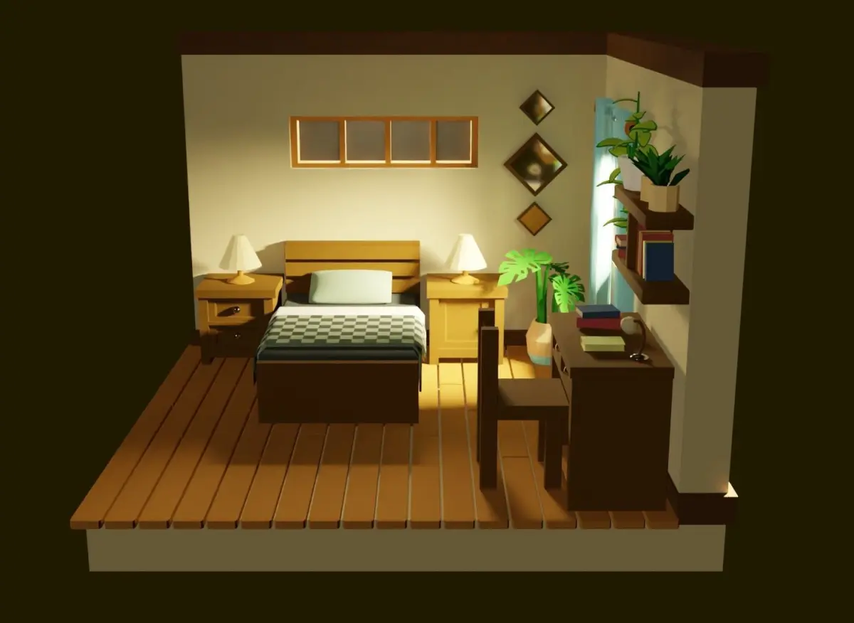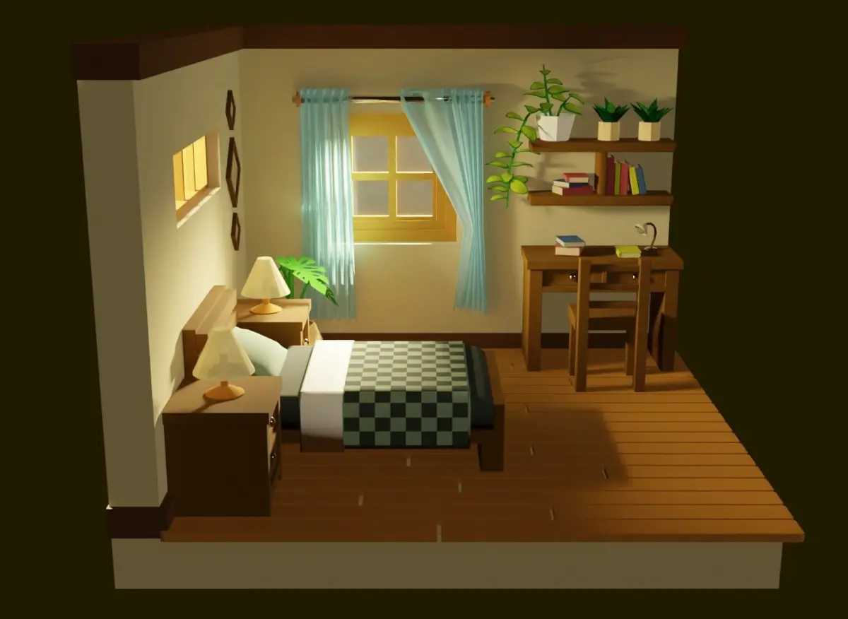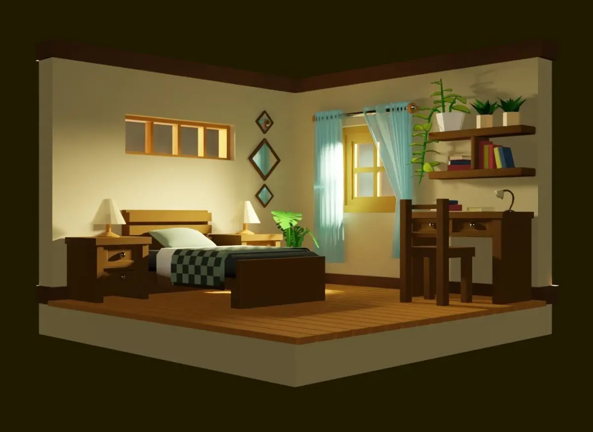 I created this low poly Isometric Bed Room using Blender 3.0.1. All house objects are named and separated. No texture use for this model