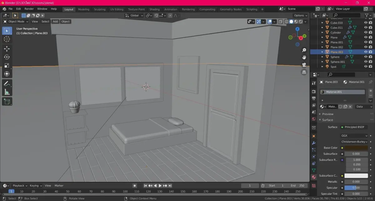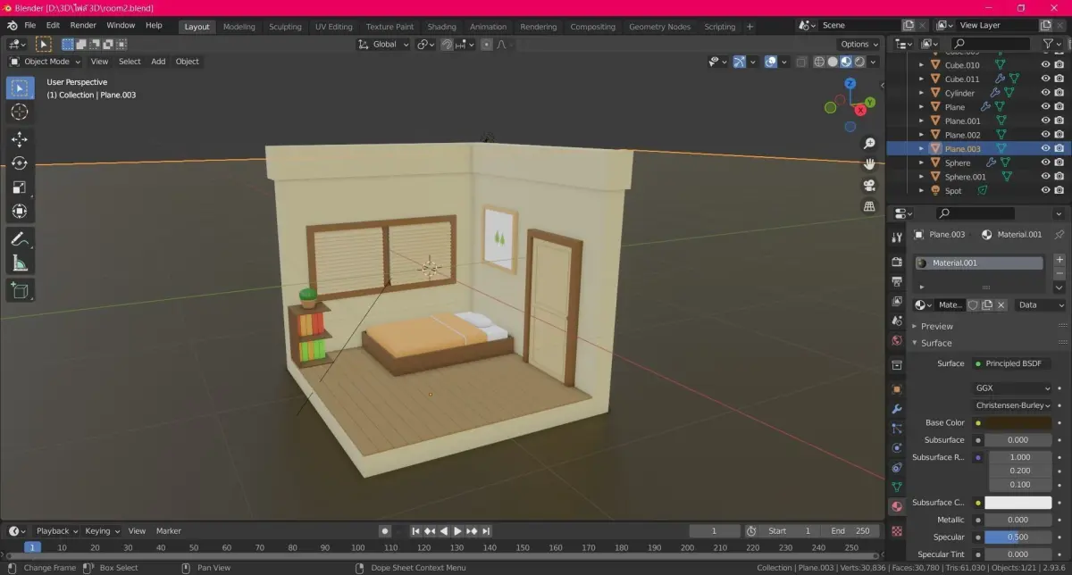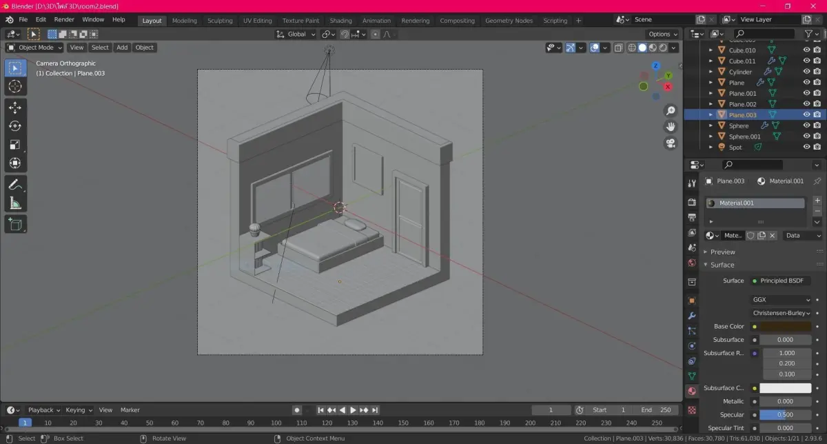 bedroom night time made in blender 2.93.6