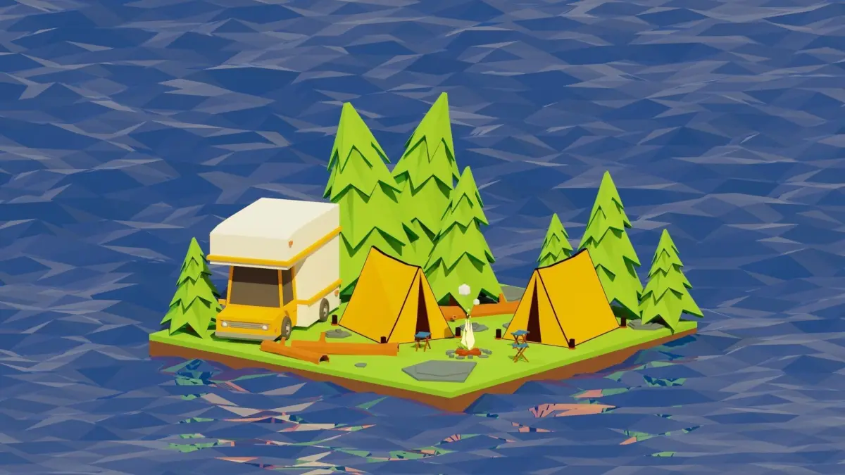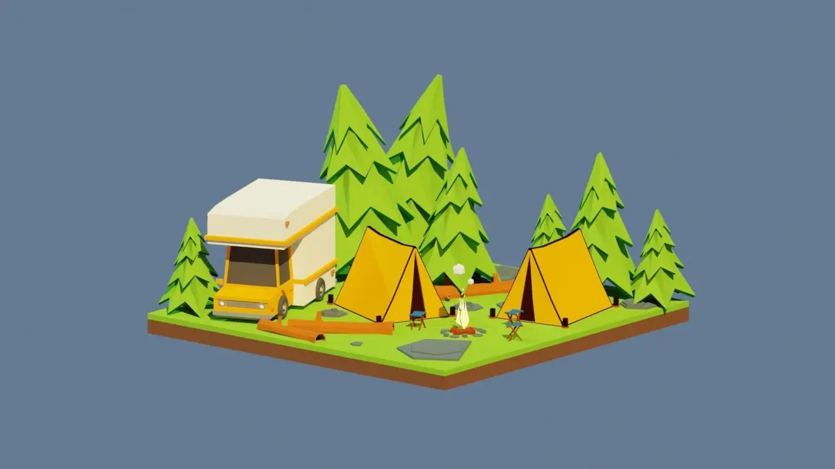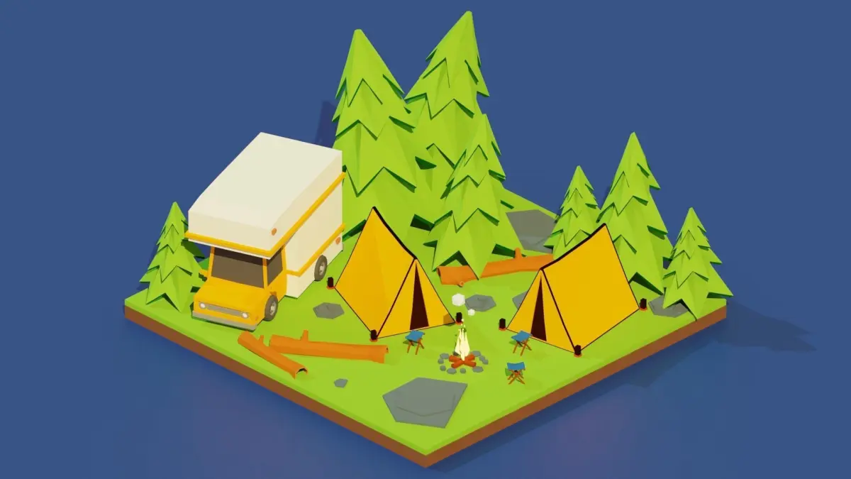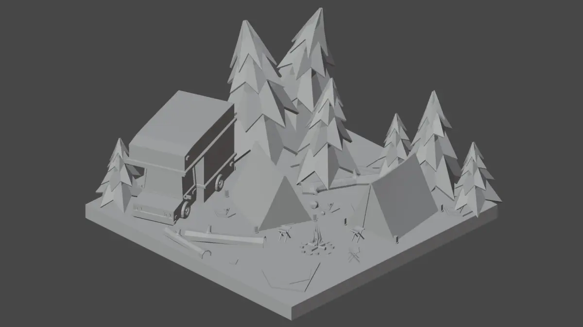Scene made up of triangles and quads, in a lowpoly style.