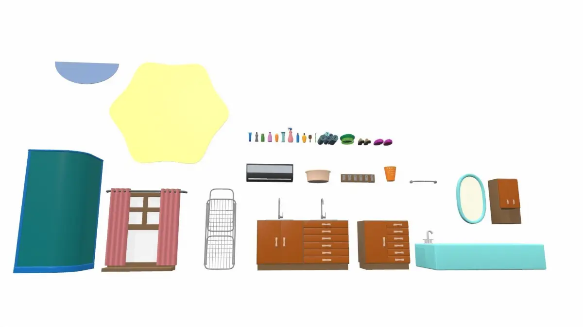 Model Isometric cartoon bathroom 01, which is suitable for interior visualization in combination with other elements.
