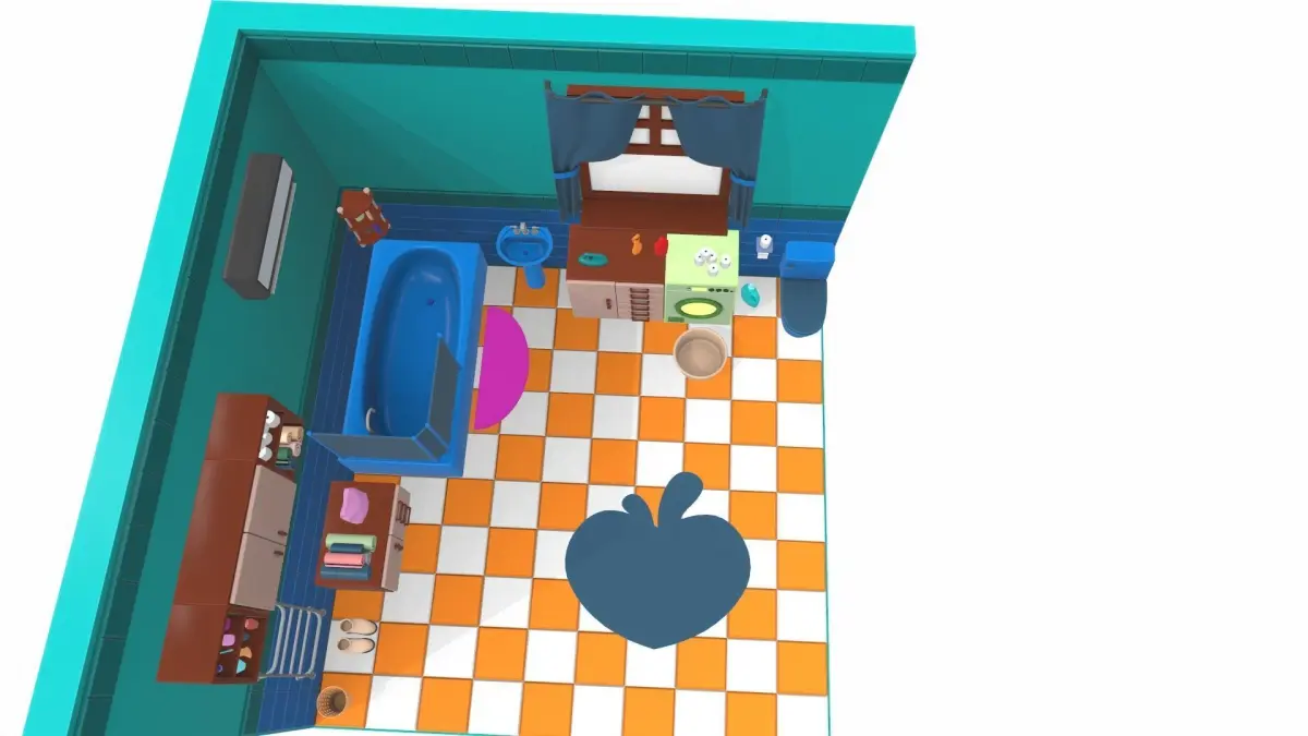 Model Isometric cartoon bathroom 03, which is suitable for interior visualization in combination with other elements.