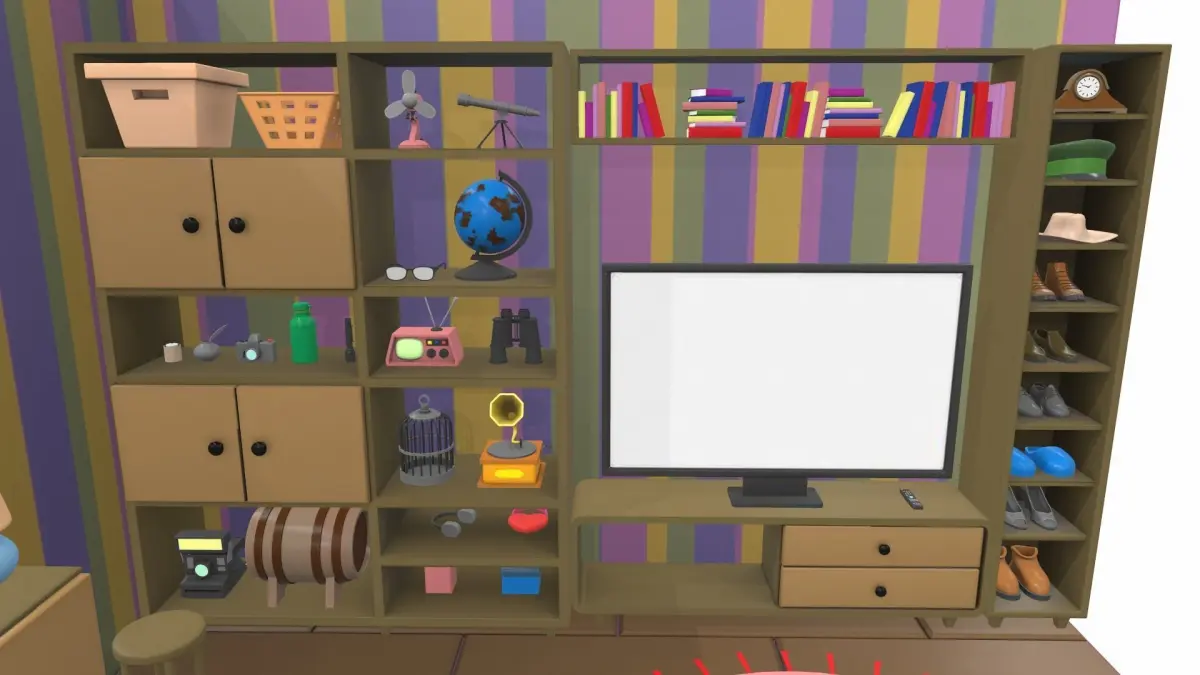 bed, beer barrel, binoculars, book, box, cabinet, cage, camera, candles, carpet, chair, clock, clothes, dresser, flashlight, glasses, globe, gramophone, handbag, hat, headphones, inkwell, jewelry box, lamp, laundry box, monitor, rack, radio, remote controller, shelf, shoe, soft table, stool, telescope, tennis racquet, thermos, ventilator, window