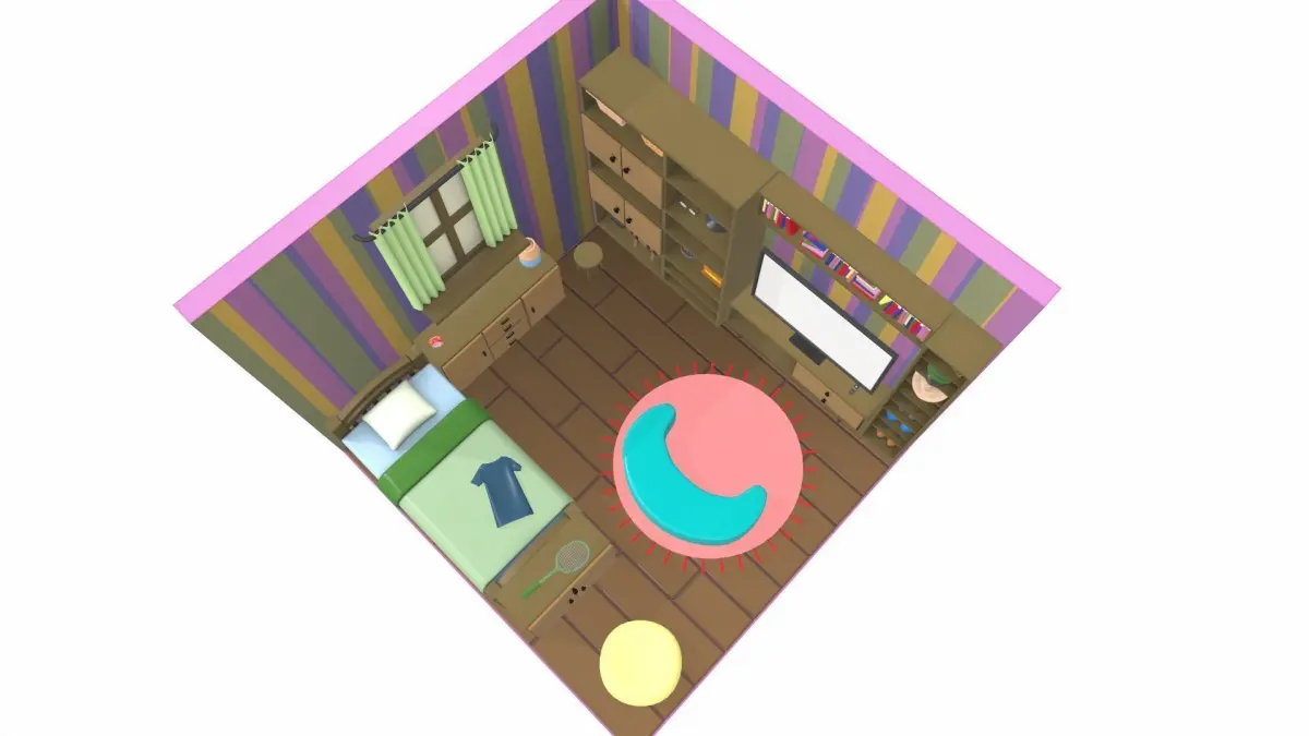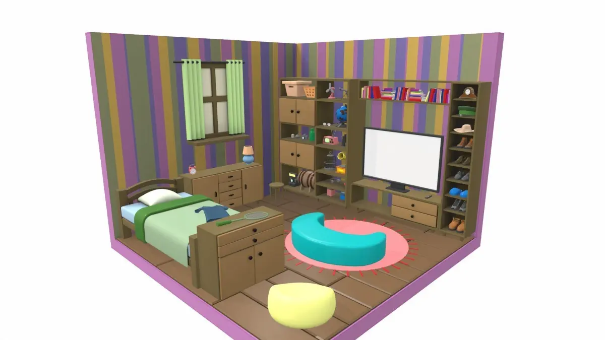 The model isometric cartoon bedroom is located in zero coordinates. UVW mapping created, all textures are in the zip archiveThe model isometric cartoon bedroom was created in 3Ds Max and textured in 3D coat. Previews of the model isometric cartoon bedroom are made in the Marmoset Toolbag program.