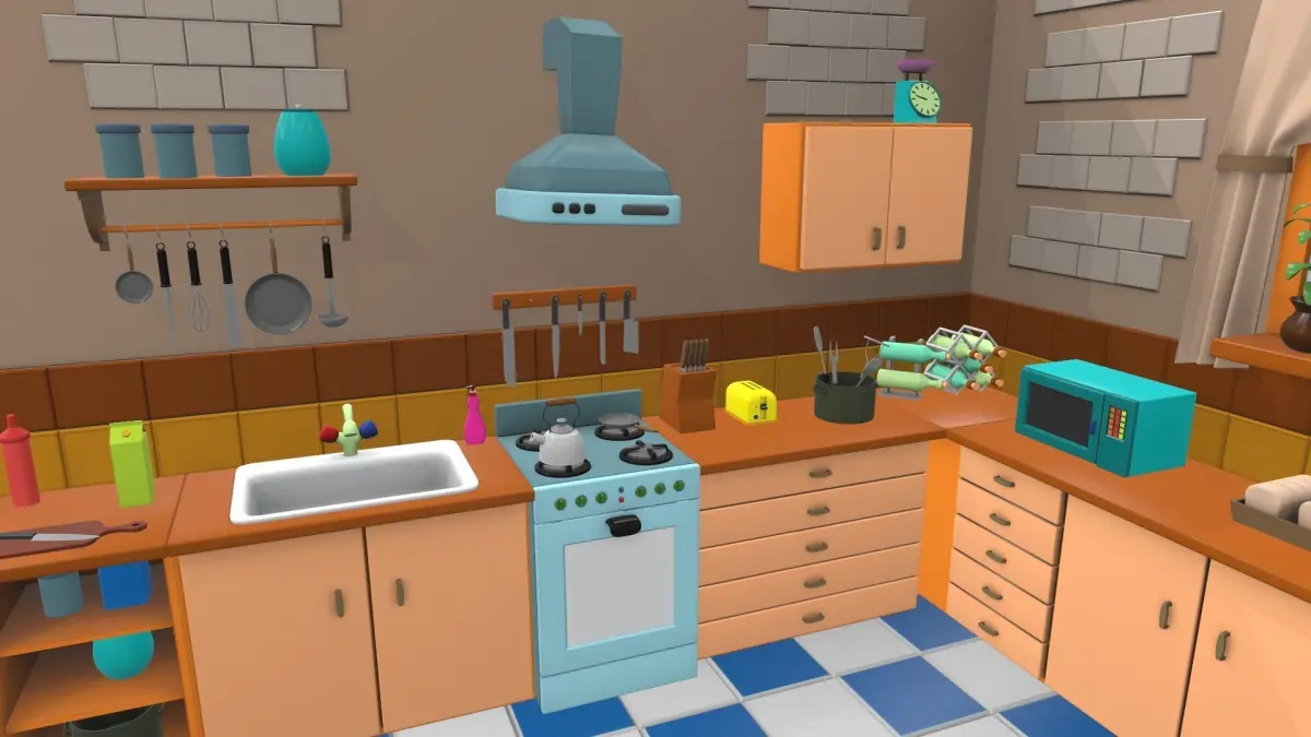 The model isometric cartoon kitchen room is located in zero coordinates. UVW mapping created, all textures are in the zip archiveThe model isometric cartoon kitchen room was created in 3Ds Max and textured in 3D coat. Previews of the model isometric cartoon kitchen room are made in the Marmoset Toolbag program.
