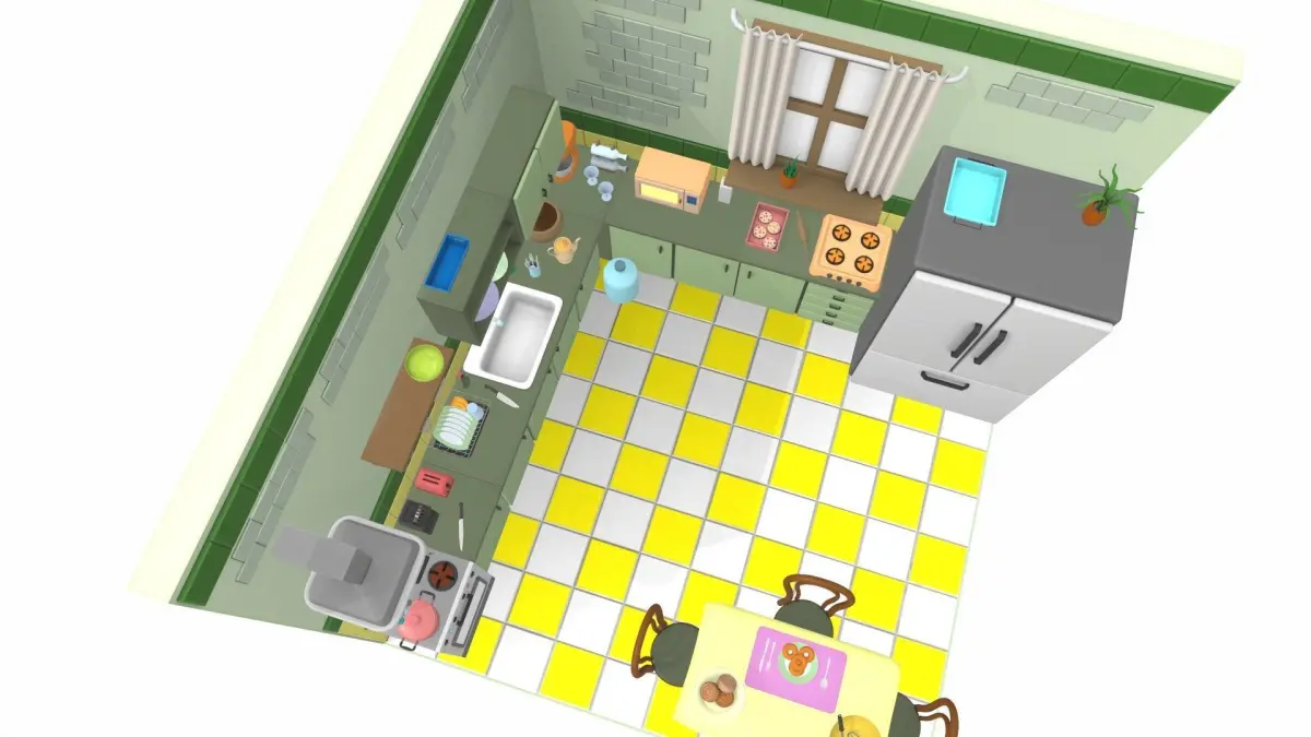 The model isometric cartoon kitchen room is located in zero coordinates. UVW mapping created, all textures are in the zip archiveThe model isometric cartoon kitchen room was created in 3Ds Max and textured in 3D coat. Previews of the model isometric cartoon kitchen room are made in the Marmoset Toolbag program.