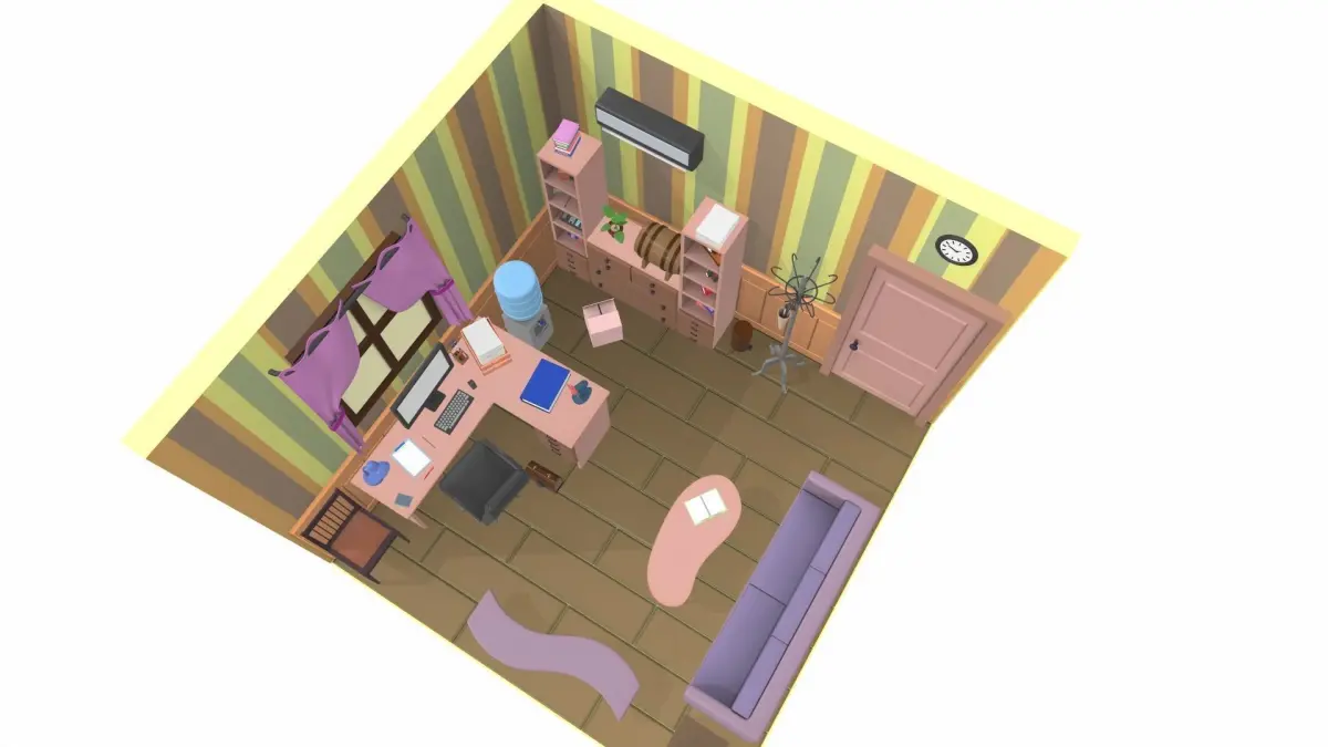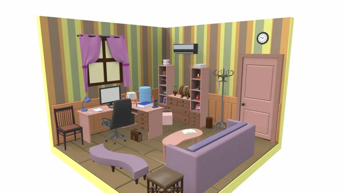 The model isometric cartoon office room is located in zero coordinates. UVW mapping created, all textures are in the zip archiveThe model isometric cartoon office room was created in 3Ds Max and textured in 3D coat. Previews of the model isometric cartoon office room are made in the Marmoset Toolbag program.