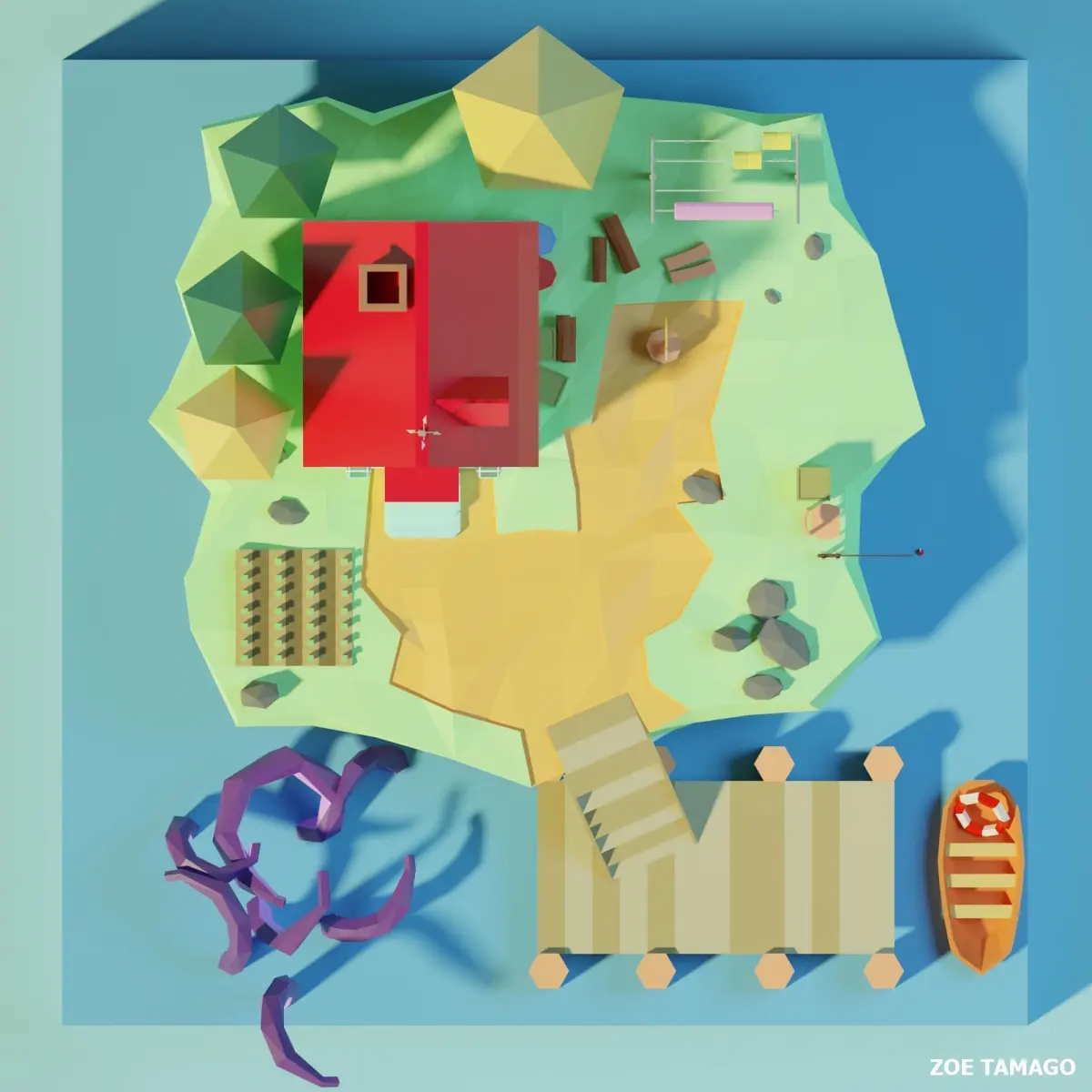 High quality low poly 3D Diorama filled with varieties of cute and quirky props.