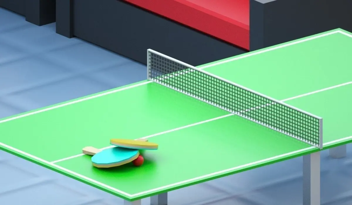 Isometric view of a schematic office floor plan scheme with low-poly furniture and etc. As seen on previews, there are cafeteria with table tennis, office with reception, kitchen zone, warehous with HR zone and product marketing department on the floors. Made in Cinema 4D using Octane render.