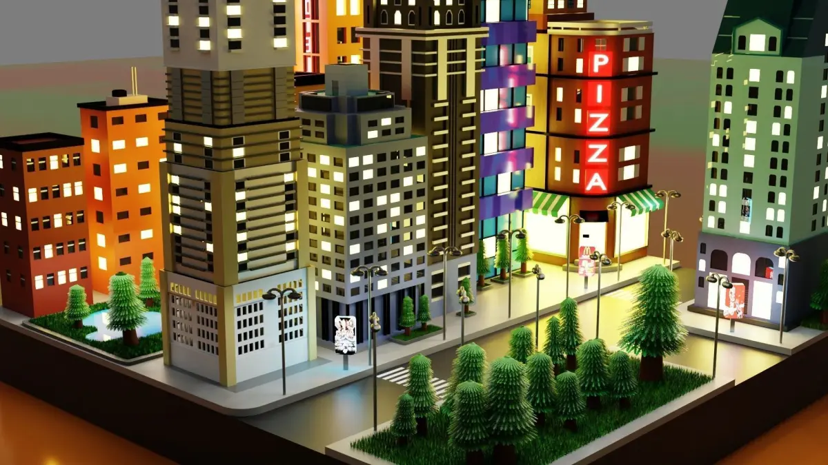 • Isometric Megalopolis Low Poly 3D Model (FBX. / OBJ. / MTL. / GLB. GLTF. / STL. / Blend File Formats Attached).