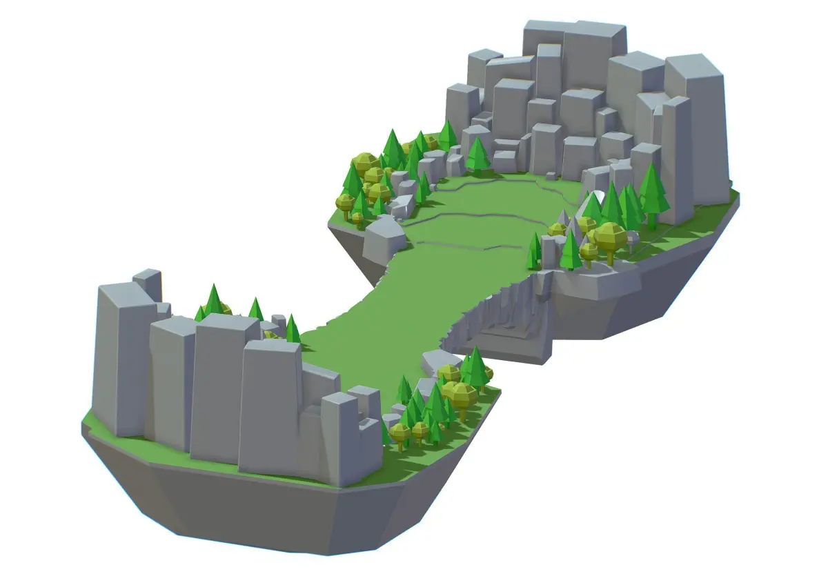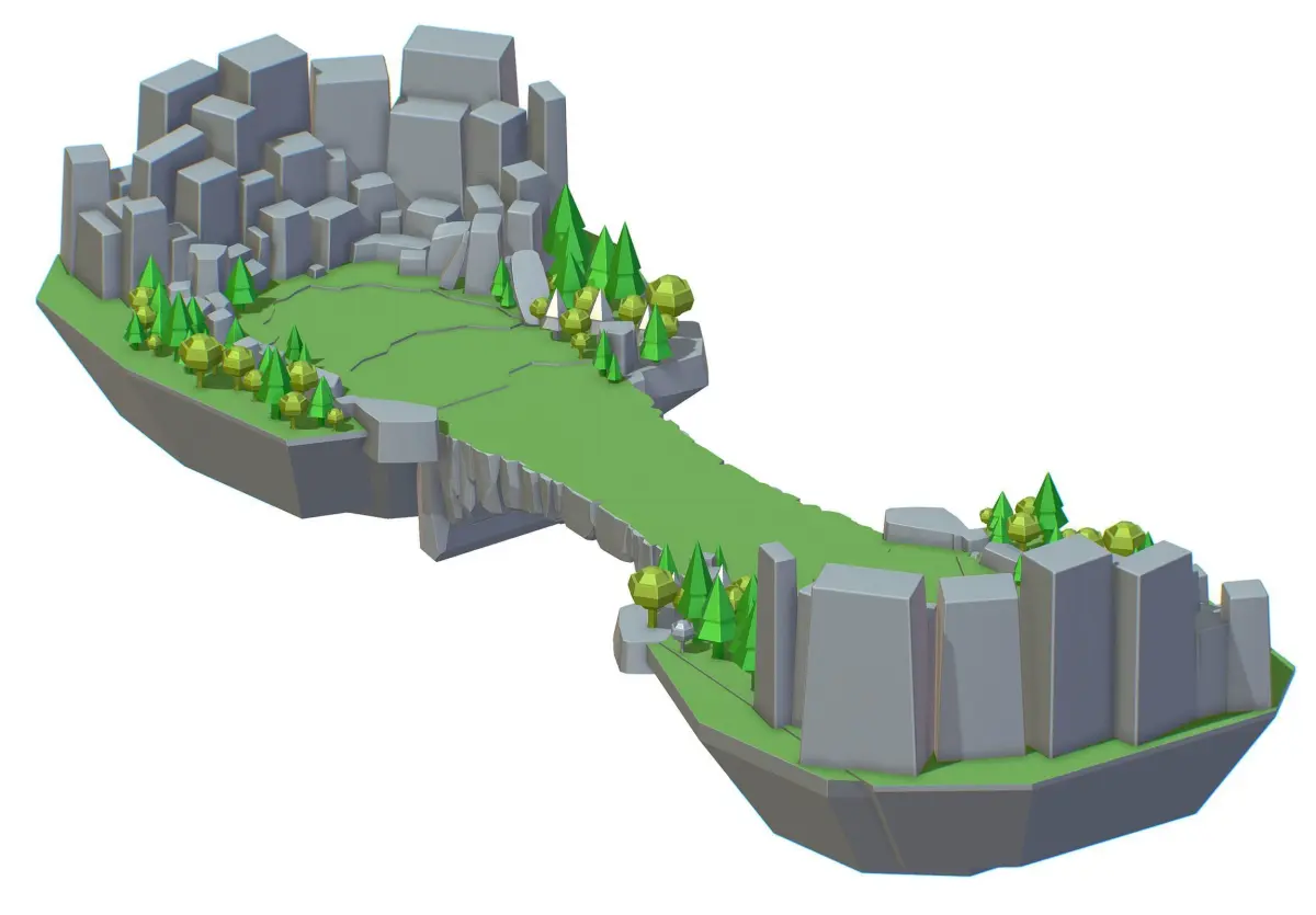 Isometrical Level Island and Bridge Area Low-poly 3D model