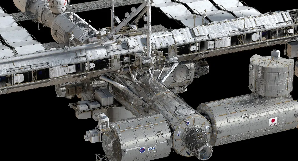 Each module of the space station is placed on its own layer,and is separable.