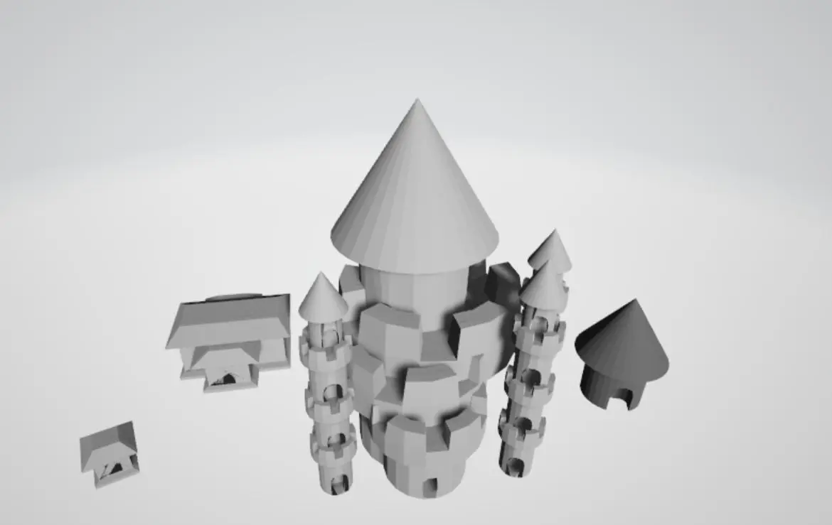 properti asset istana menara dengan rim lighting (3d model, lowpoly)