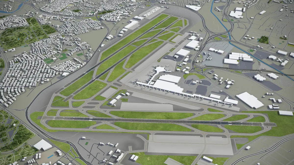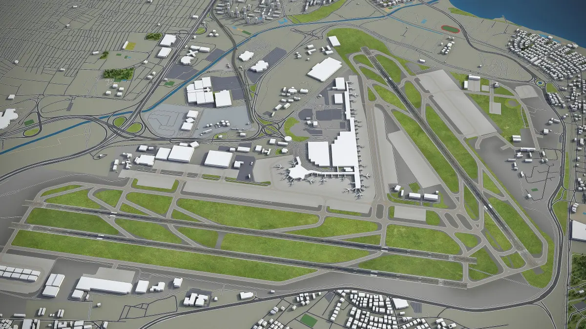 - Trees, vegetation, land-use and airport surface with the textures assigned
