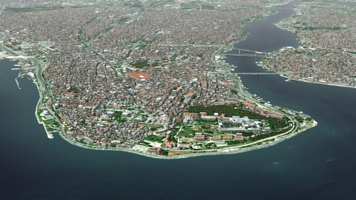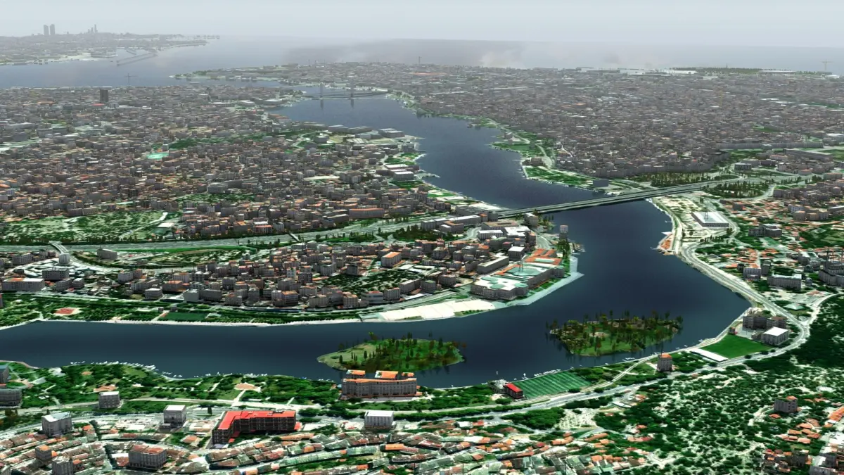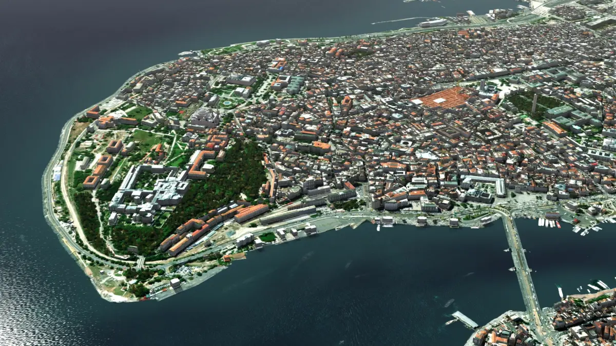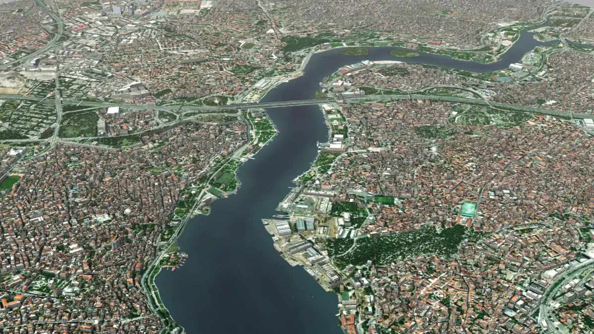 Istanbul City and surrounding areas, Turkiye, Europe. 13km x 12km core real world terrain data, randomized building textures. Set includes, trees and foliage, plus over 100 square km of the downtown urban area. Max version (2014 or above) includes render set-up ready to recreate preview images 'out of the box'. 48 textures used, 890 Mb of data.