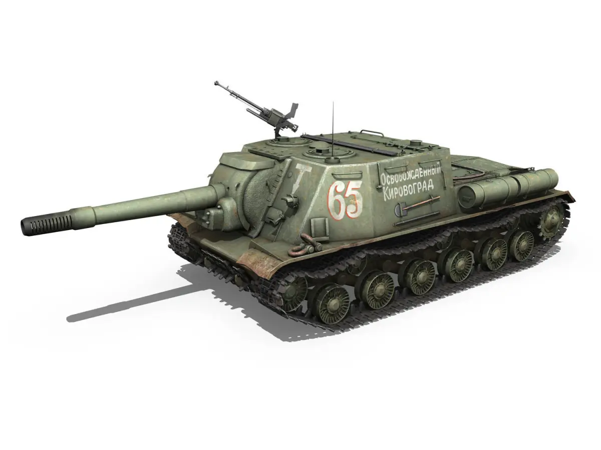 obj File - lwo file - 3ds file - fbx file Version 2010The ISU-152 used the same concept as the earlier SU-152: a large gun-howitzer mounted in the hull of a heavy tank. The ISU-152 used the same gun as the SU-152 but on the hull of an IS-2 tank instead of the KV-1.The ISU-152 was developed further during 1944. A new hull front was added and the gun shield was thickened from 60 mm to 100 mm. Several essential minor improvements were also made at this time: internal and external fuel capacity were increased, a 12.7-mm anti-aircraft DShK machine gun was installed by the right forward hatch, and the 10R radio set was upgraded to a 10RK.Between November 1943 and May 1945, 1,885 ISU-152s were built. Mass production ceased in 1947, with 3,242 vehicles produced in total.