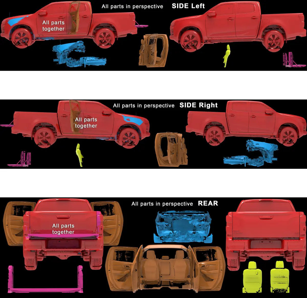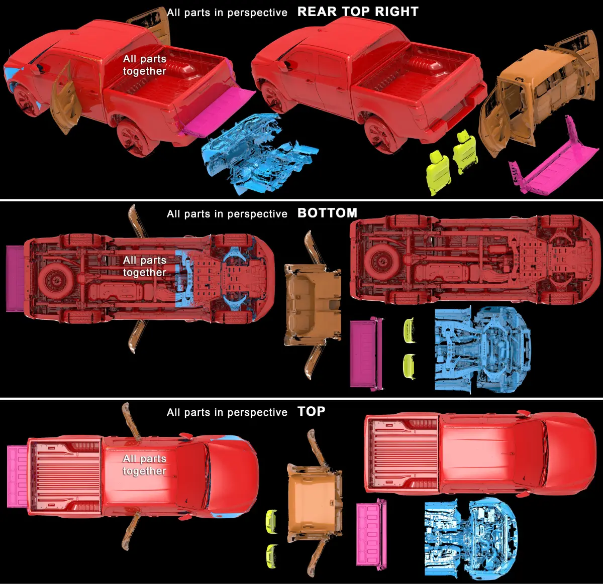 All parts of this car use the same coordinate systemFree of charge when exchanged with another real existing pickup car/model!!!!Units are in mm