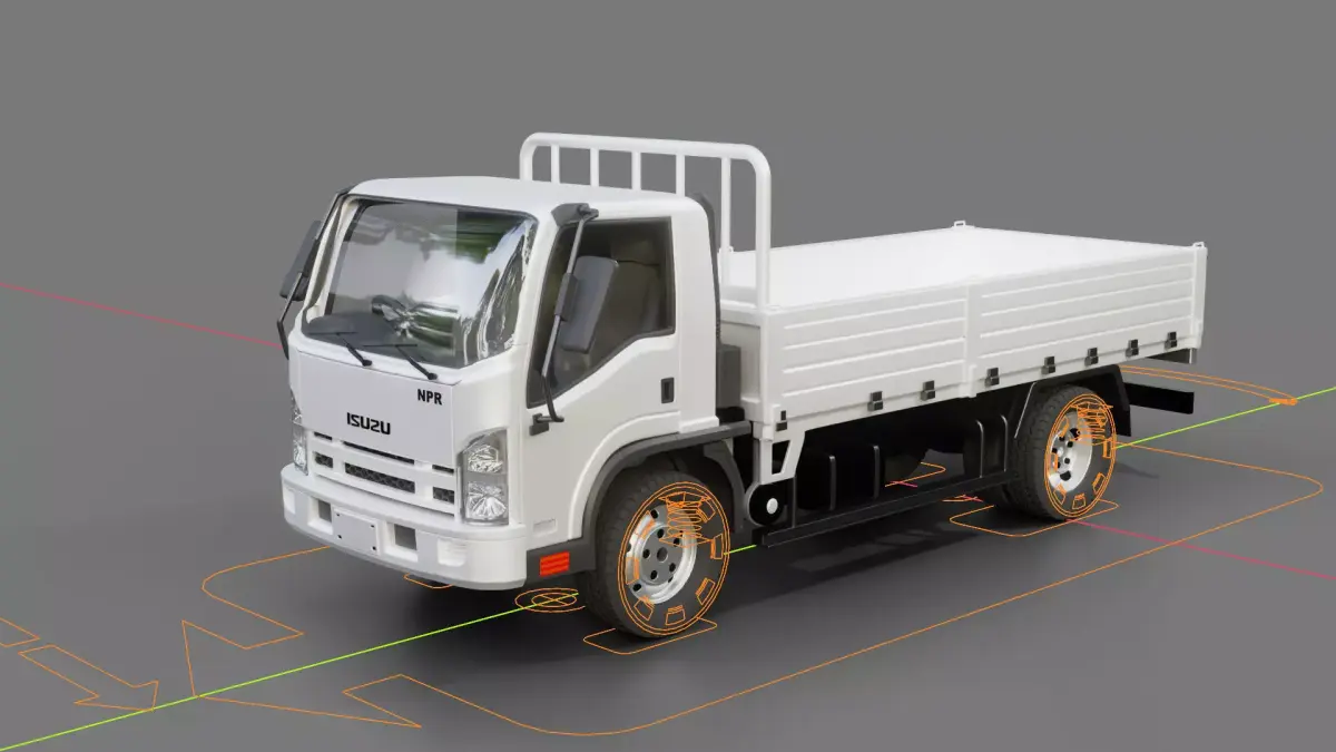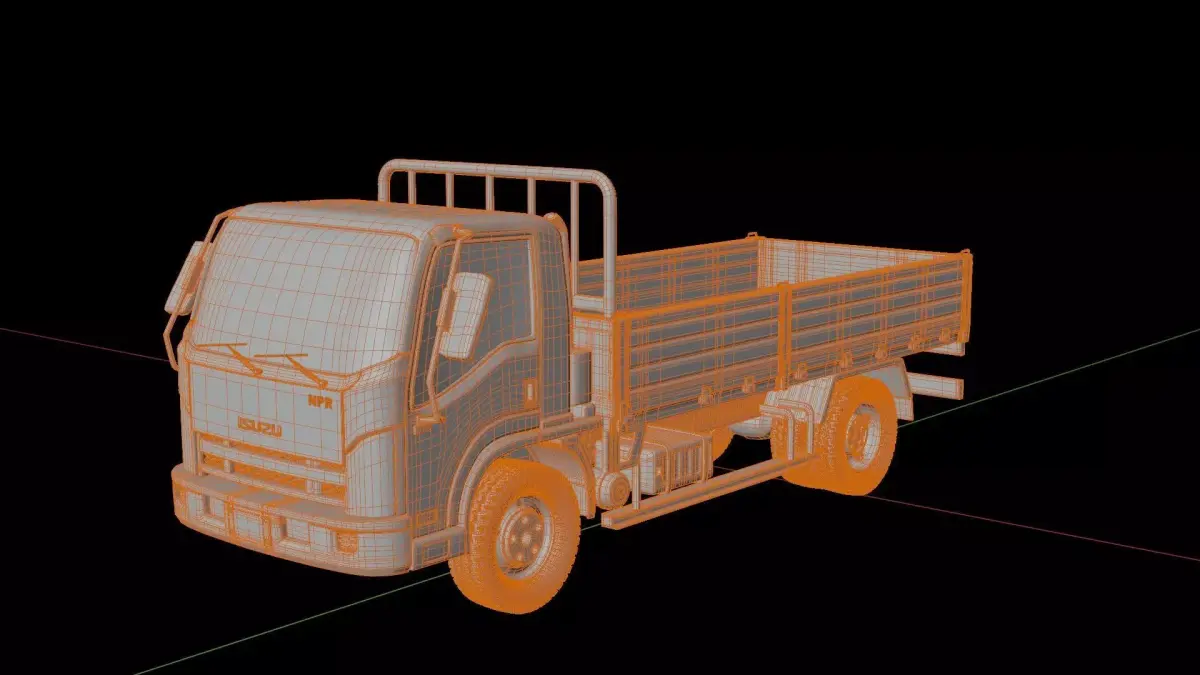 3D model of the Isuzu NPR Flatbed Truck. Created in Blender and rigged.The mesh of the model in the Blender file format is mainly quads.